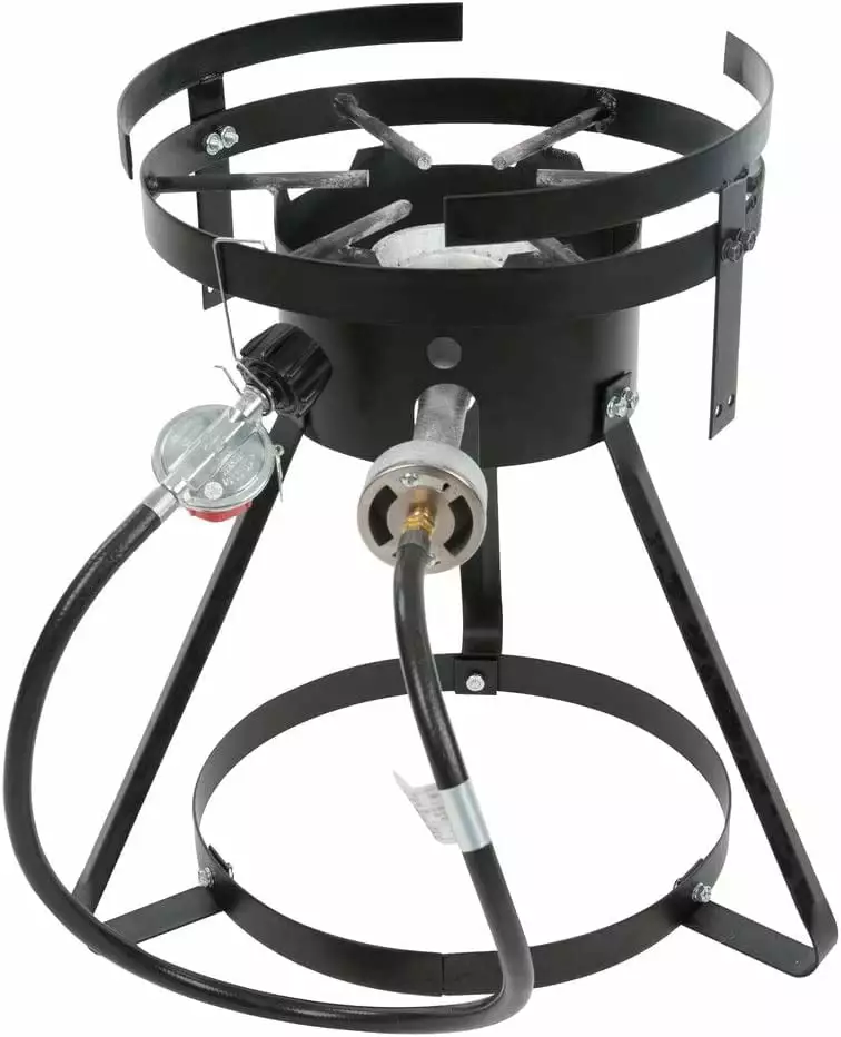 1—–SPECS Height17 1/2 Inches Cooking Surface Diameter13 Inches Capacity per Fry Pot10 qt. MaterialAluminum Power TypeLiquid Propane Total BTU55.000 TypeFryer Pots UsagePortable Outdoor Grills ************Details Fry up delicious fish filets. fries. chicken wings. and other crispy food with this Backyard Pro 10 qt. fish fryer! Specially designed for outdoor cooking. this fryer is great for barbecues. fairs. and sporting events. A powerful 55.000 BTU cast iron burner gives this unit plenty of power to cook a wide variety of delicacies. and the built-in 360 degree windscreen ensures a strong. steady flame for even cooking. Side pot holders and the recessed top ring ensure stability during use. This fish fryer features a large 13 cooking surface that easily accommodates the included 10 qt. aluminum pot. A perforated basket allows you to drain oil from your fried fish before serving. and can also double as a steamer basket for steaming clams or vegetables. To help you achieve the desired oil temperature. a 5 deep fry thermometer is included. It measures from 100-750 degrees Fahrenheit and comes with a clip so you can secure it to the side of the pot. *********A solid foundation for your fry pot is important when you’re frying outside. This fryer features a tripod stand design. reinforced with a bottom ring to make sure the hot contents stay inside the pot where they belong. A 5 PSI adjustable regulator and rubber hose ensure steady fuel flow from your existing liquid propane tank to your burner for efficient. consistent results at your outdoor events. This fryer ships knocked down to save you money on shipping costs.