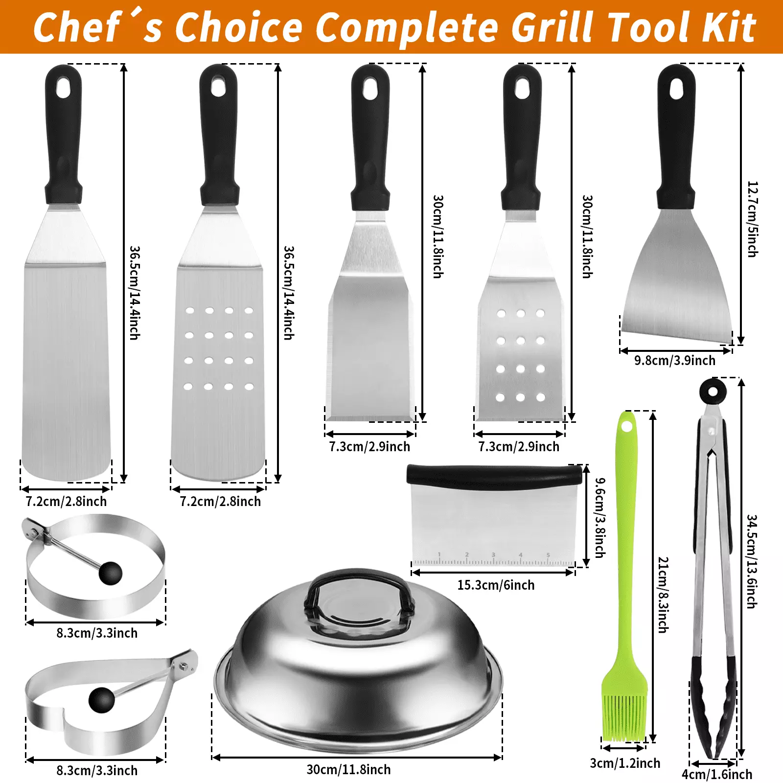 - Safety and hygiene: stainless steel barbecue tools will not release harmful substances. will not affect the food. to ensure the safety and hygiene of food.
