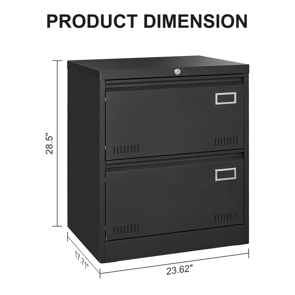 2 Drawer Metal Lateral File Cabinet With Lock, Office Vertical Files Cabinet For Home Office, Locking Metal File Cabinet – Black