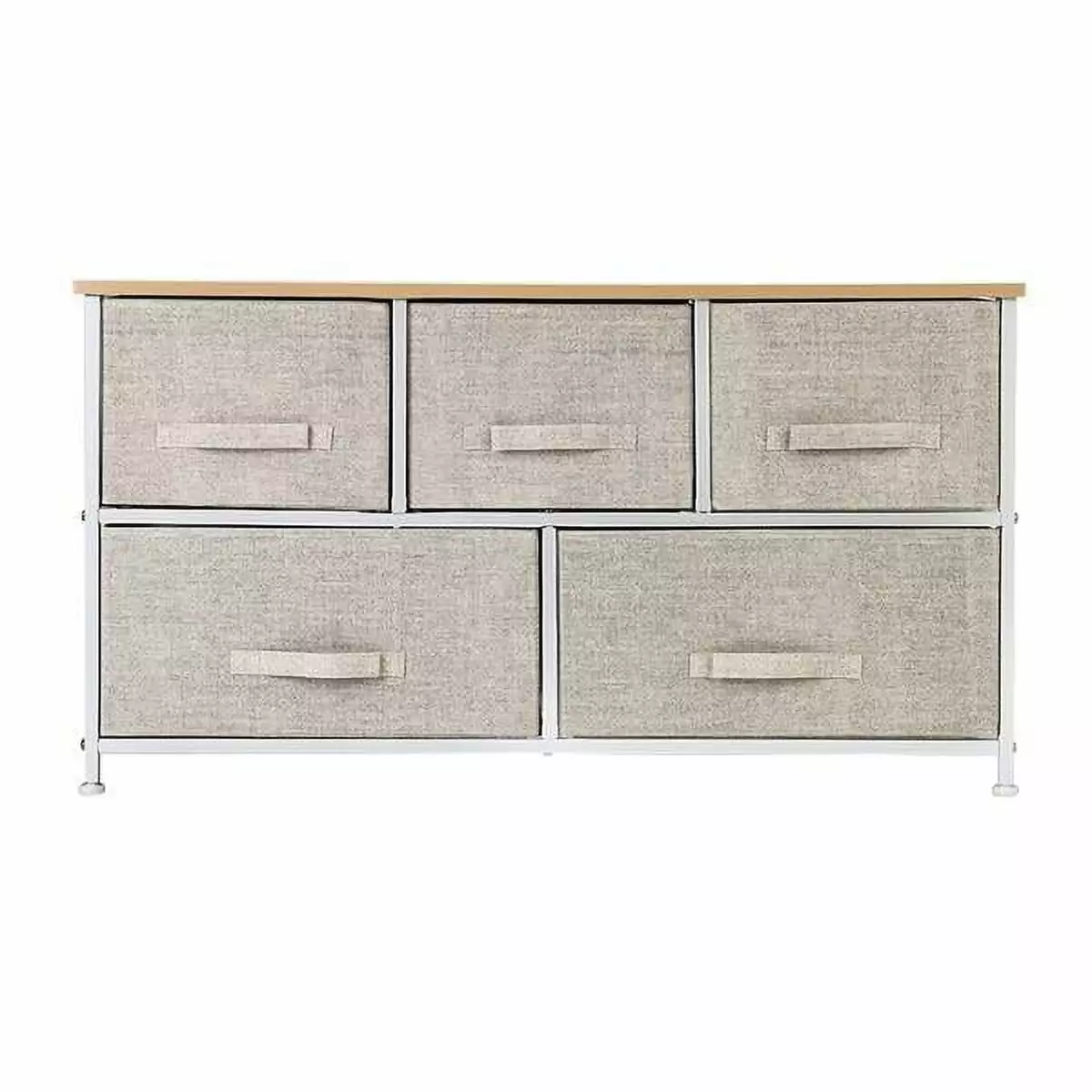 2-Tier Wide Closet Dresser. Nursery Dresser Tower With 5 Easy Pull Fabric Drawers And Metal Frame. Multi-Purpose Organizer Unit For Closets. Dorm Room. Living Room. Hallway. Linen/Natural