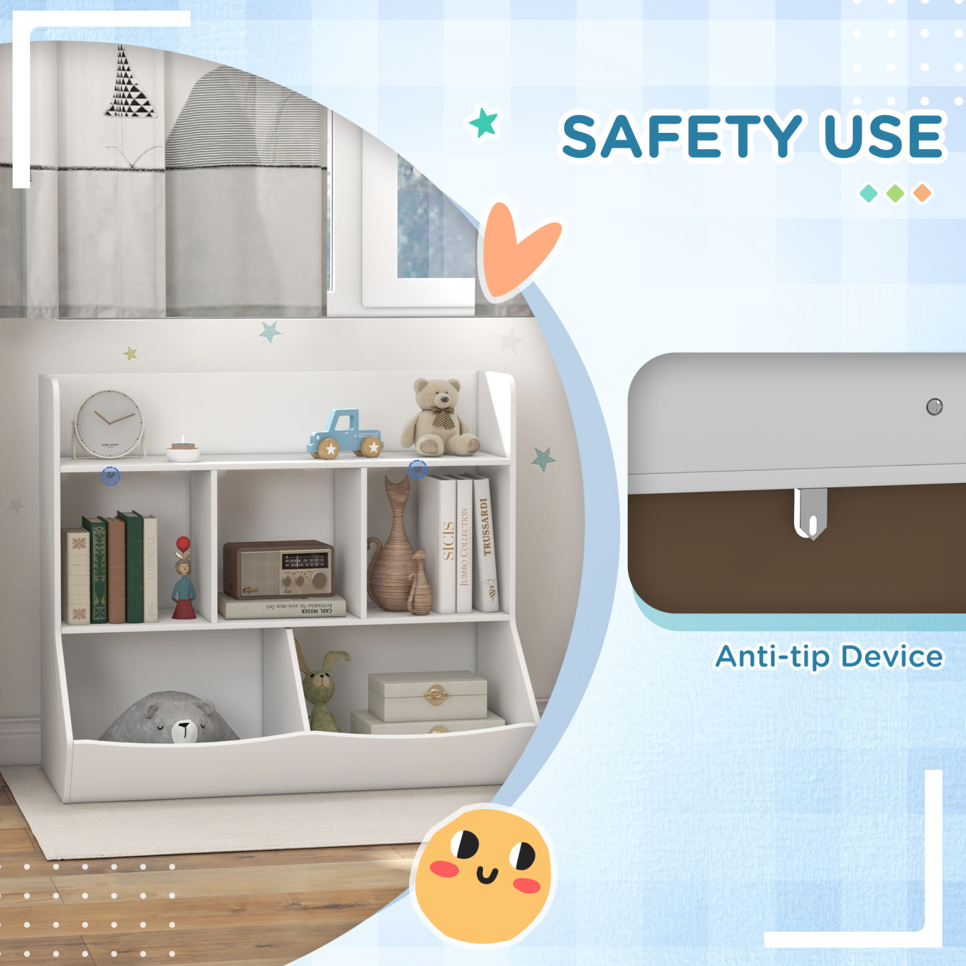 Transform your child’s space into a tidy haven with the kids’ storage shelf. Designed with three tiers and 5 compartments. it’s a great toy storage organizer for nurseries. playrooms. or classrooms. Its large opening makes cleanup a breeze. ensuring every toy and book finds its place. Safety is a top priority with an included anti-tip device. making it a must-have kids’ bookshelf and toy shelf.