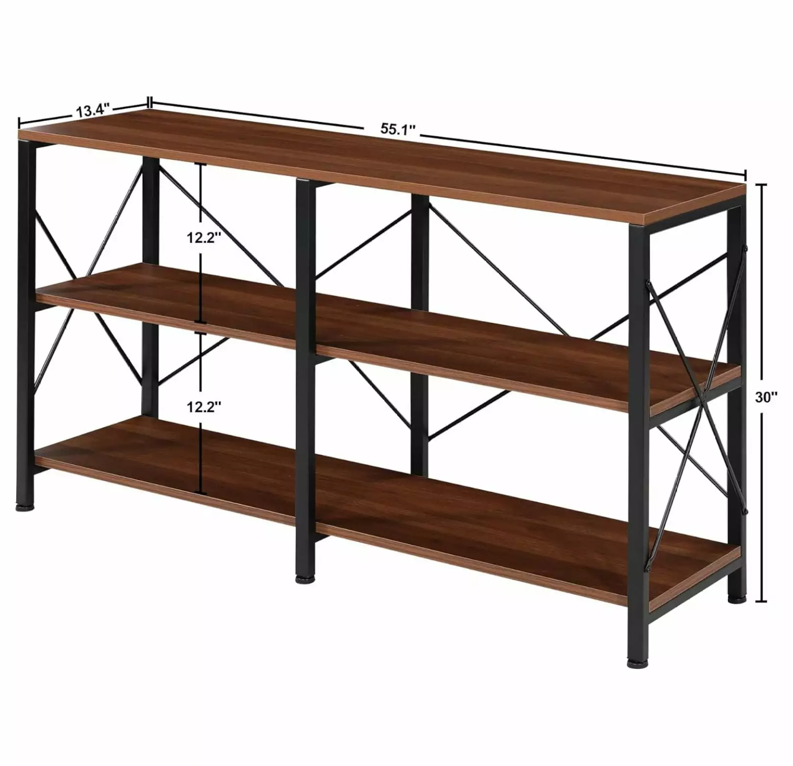 - BUILT TO LASTThis bookshelf is quite sturdy and solid. Manufactured from high quality engineered wood. And the shelves are supported by powder coated steel plus 4 x-shaped crossbars to ensure stability and add strength.