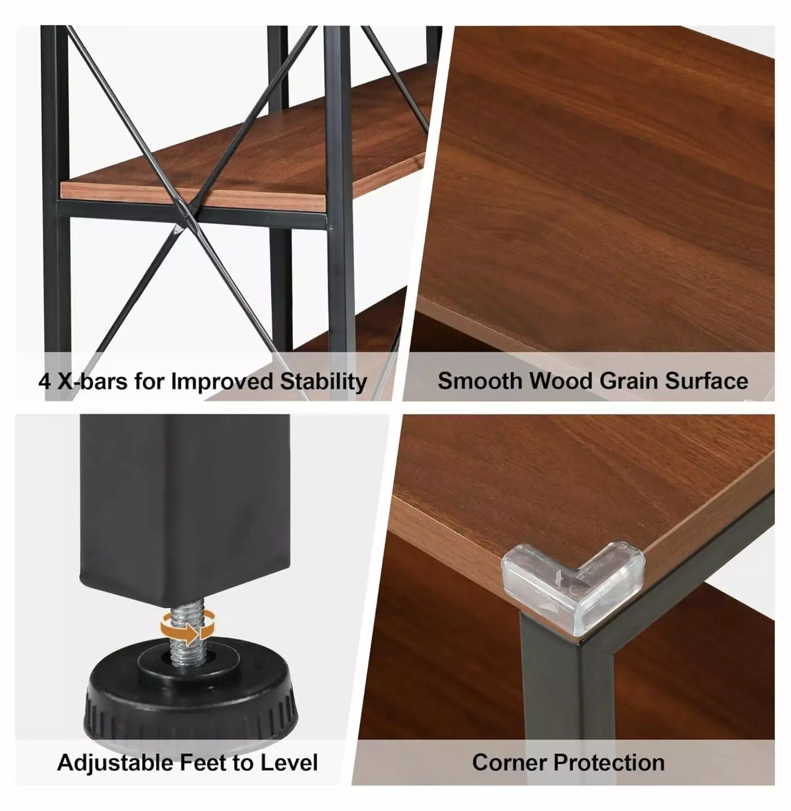 - SAFETY FIRSTEvery bookcase includes 4 corner protectors . It just takes a few minutes to your family members. children. and pets.