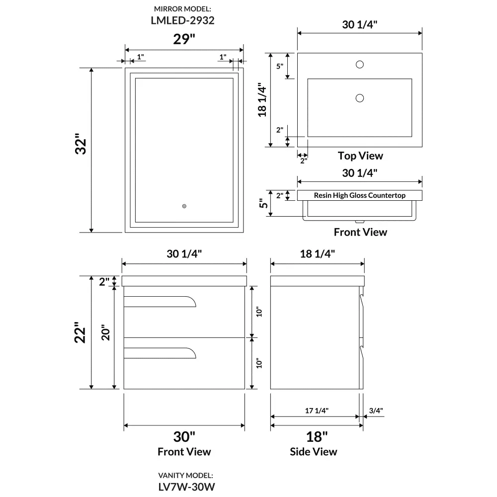 30″ Wall Mount Single Sink Bathroom Vanity in Gray Gloss ● Trusted Brand – 10K+ Reviews ● Industry Leading Warranty ▶ No-Risk 90-Day Trial