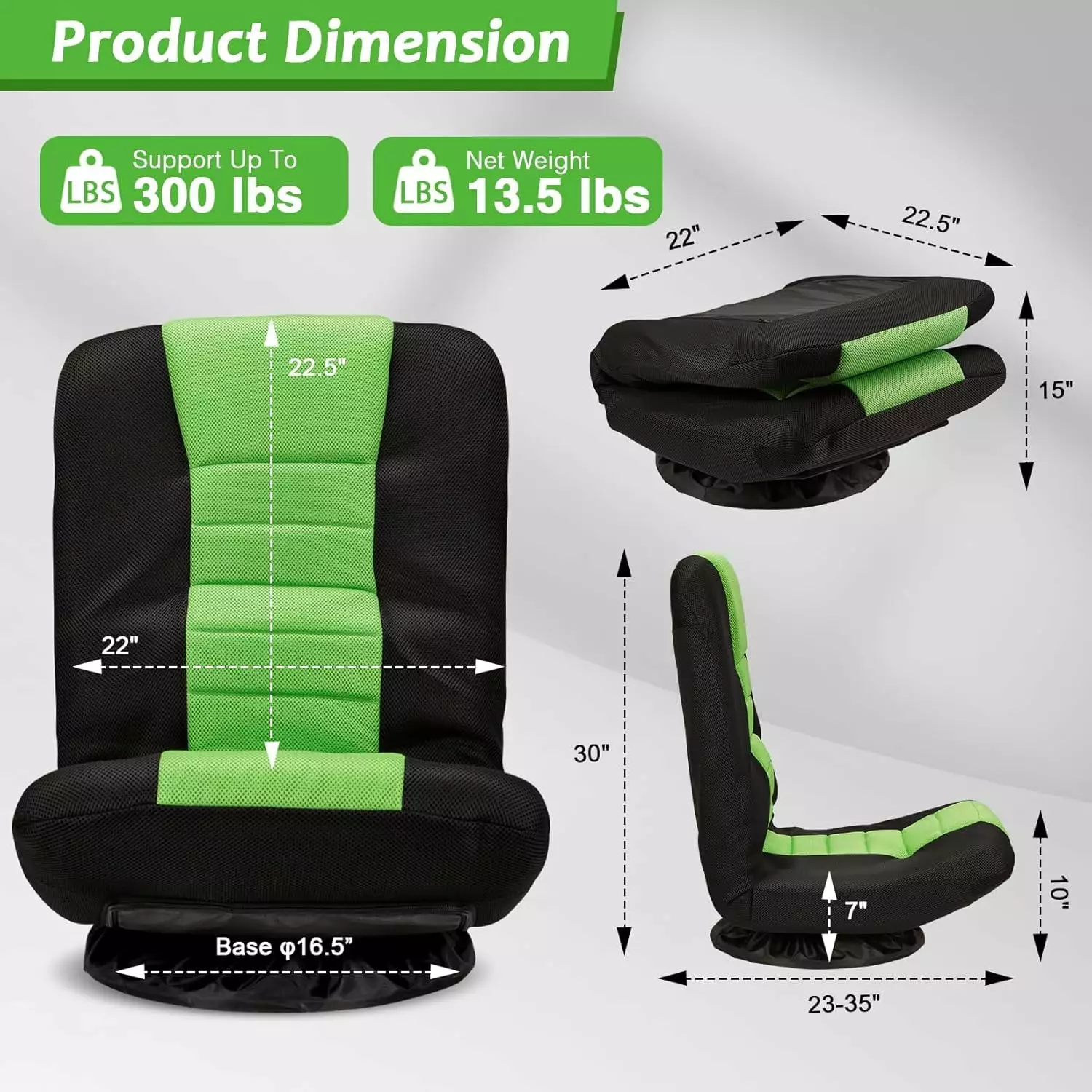 **Foldable Design & Easy to Carry**The gaming floor chair is foldable. Just push the backrest to the chair cushion. then it can be easily folded. When it is not in use. you can fold it to make room for indoor activities. And you can easily carry it to wherever you want and set it up on the flat.dry and clean floor.