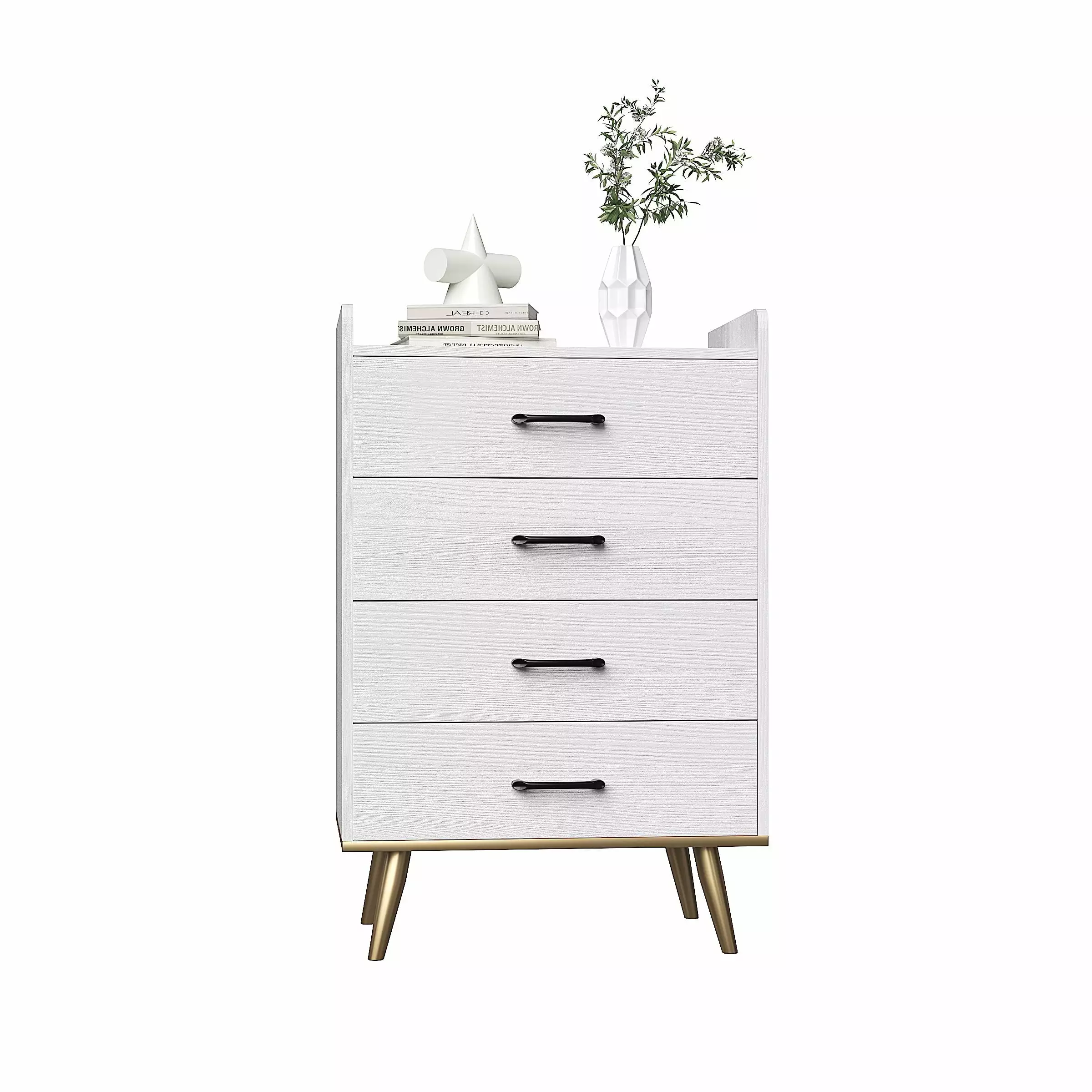 The 4-Drawer Dresser Cabinet in white is a versatile and stylish piece that can be used in various locations throughout your home. Whether as a nightstand in the bedroom. an end table in the living room. or a toy storage in the nursery. this dresser adds both functionality and charm to any space.