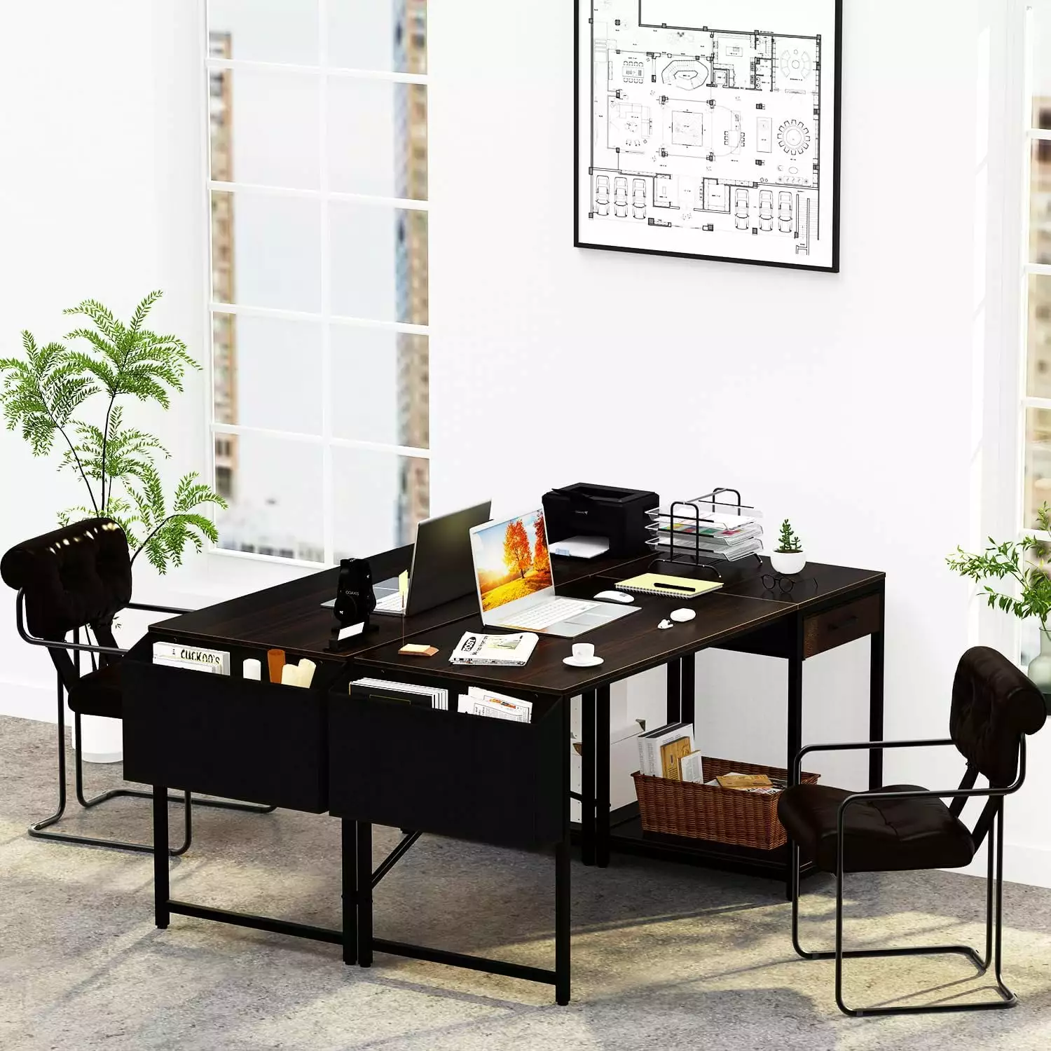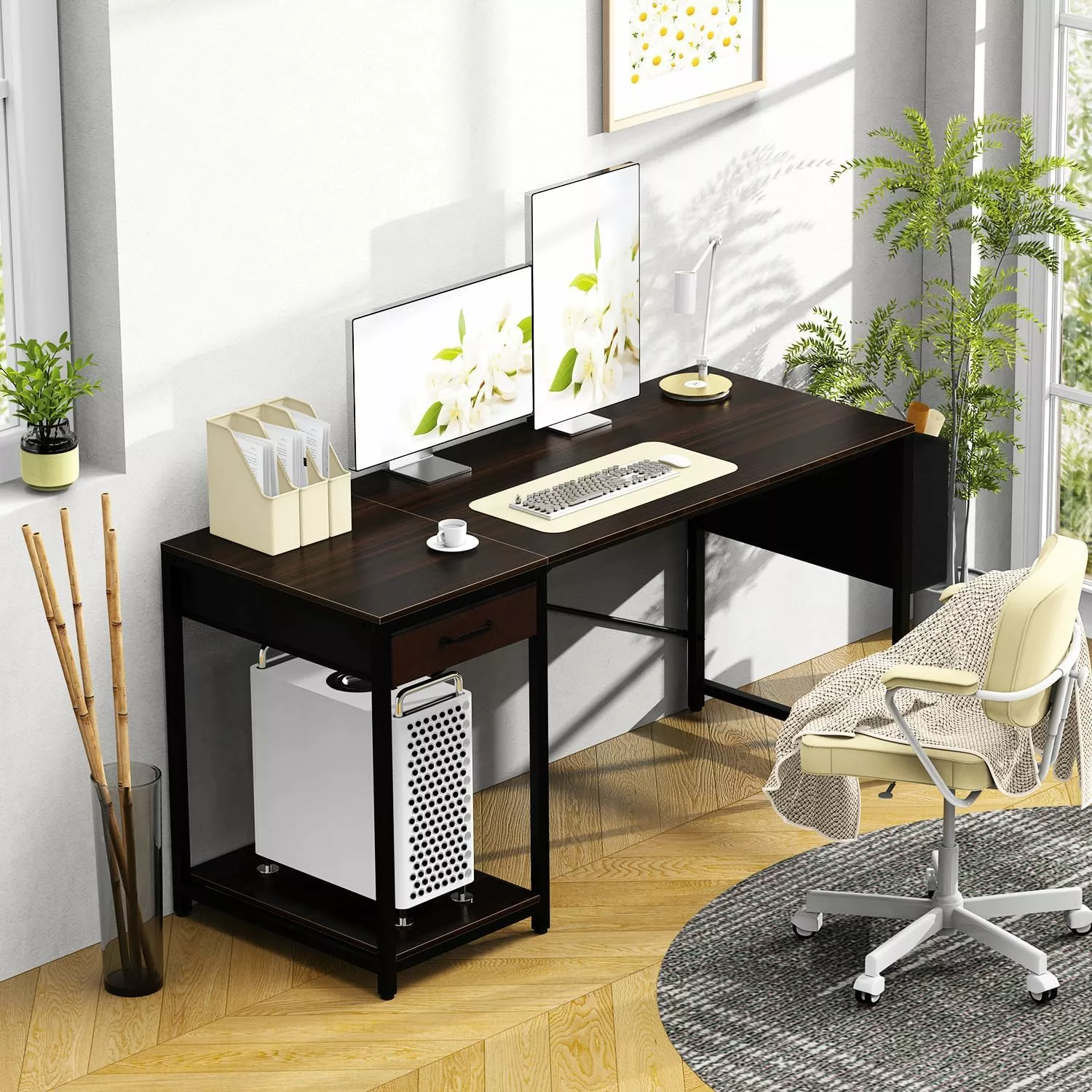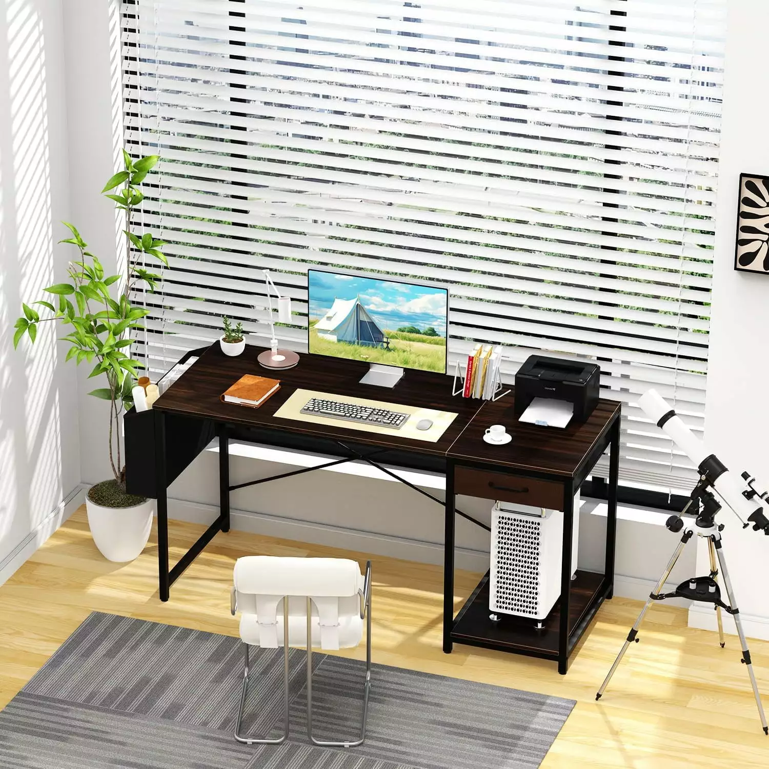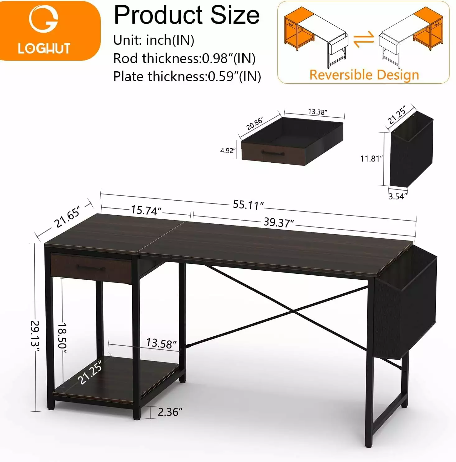 - **CONVENIENT STORAGE AND ORGANIZATION**The Computer desk with 1-tier open fabric drawers .1 side bag and one shelf for storage . which gives you super plenty of under-desk storage space.which can accommodate books. work files.office supplies. magazines. daily necessities. increasing the storage space under the desk and keeping the desktop clean and tidy.