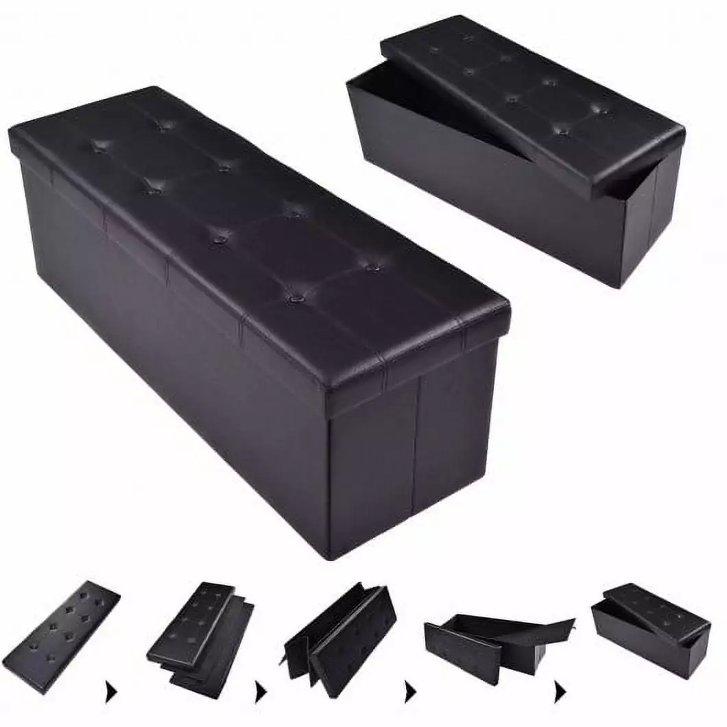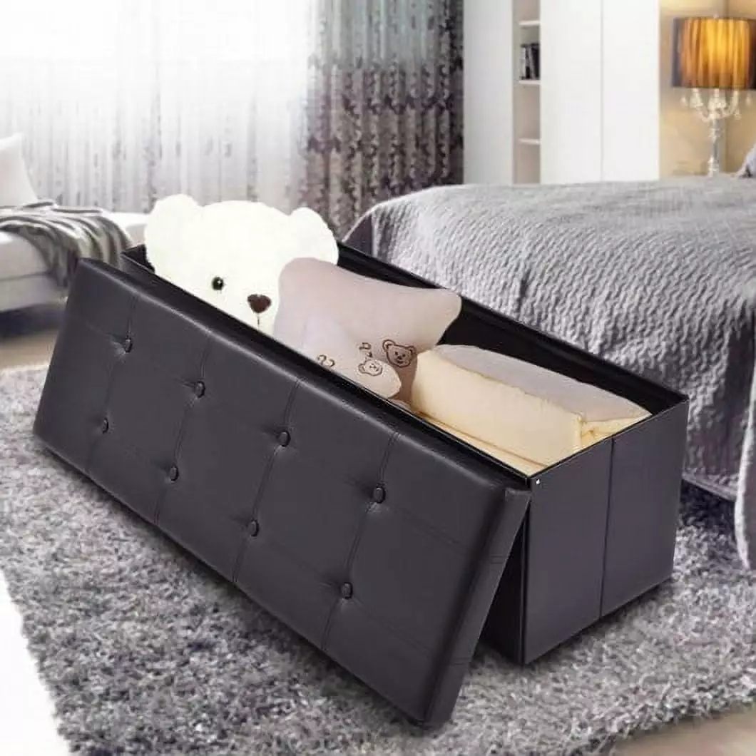 This ottoman is deal for storing and organizing goods and for where extra storage space is required. Covered with PVC leather the lightweight ottoman has high density sponge and a strong wood construction. It is a multifunctional ottoman that can be used as a deft folding storage box or an extra s