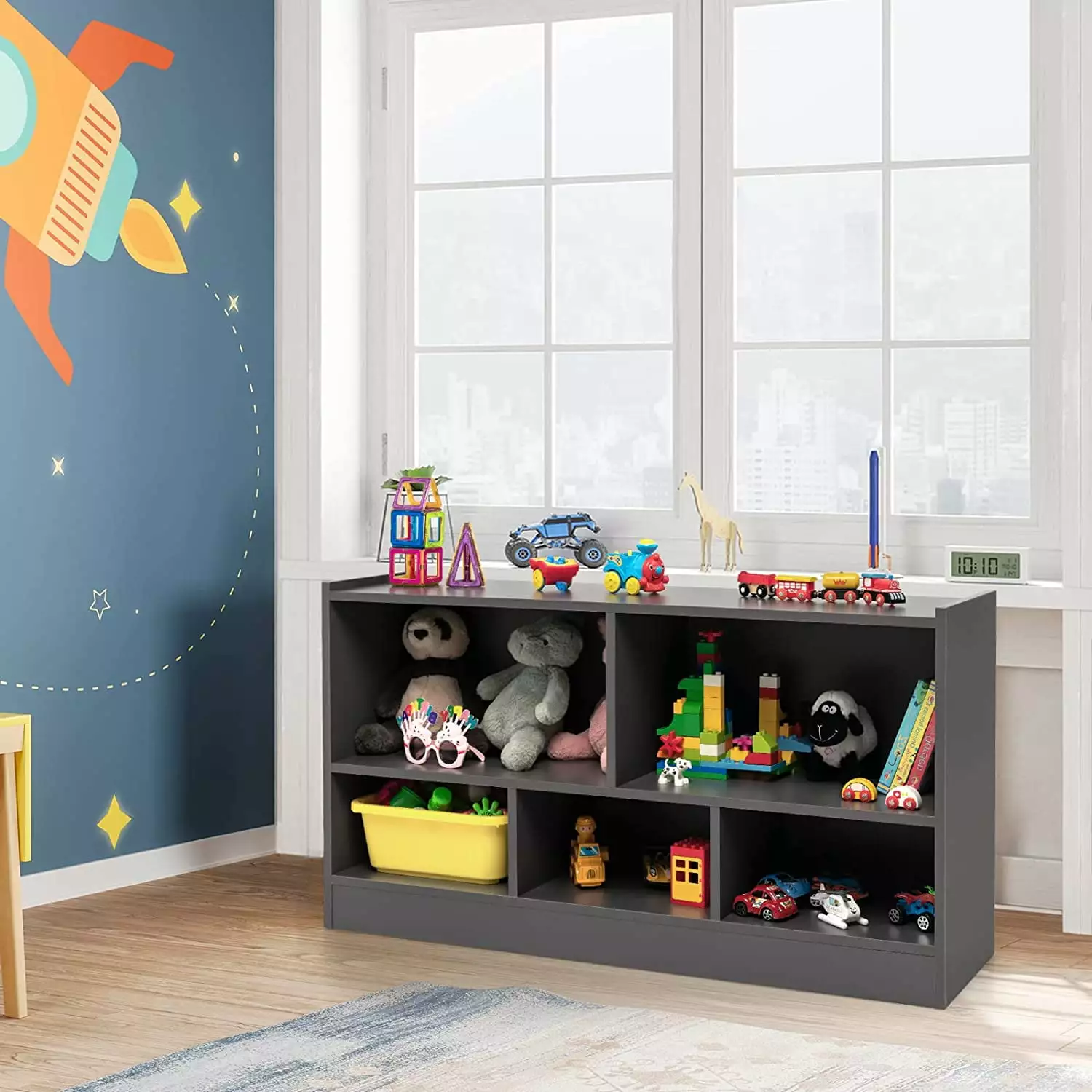 5 Cube Bookcase. 2 Tier Wooden Storage Open Bookshelf. Multipurpose Display Storage Cabinet for Living Room. Bedroom. Hallway. Kid’s Playroom. Reading Nook (Grey)