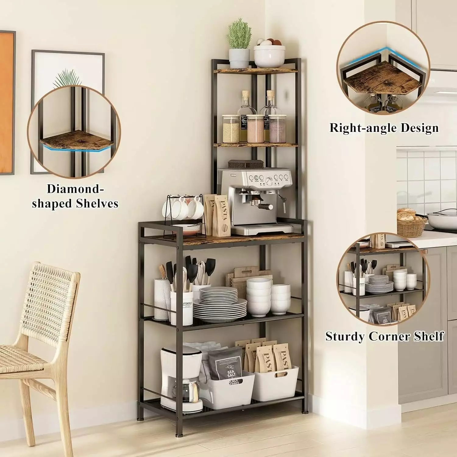 Durable Construction: Constructed with sturdy wooden boards and a durable metal frame. this corner shelf ensures stability and strength. It can effortlessly accommodate heavy items such as kitchen utensils and small aquariums. providing reliable support for your belongings.