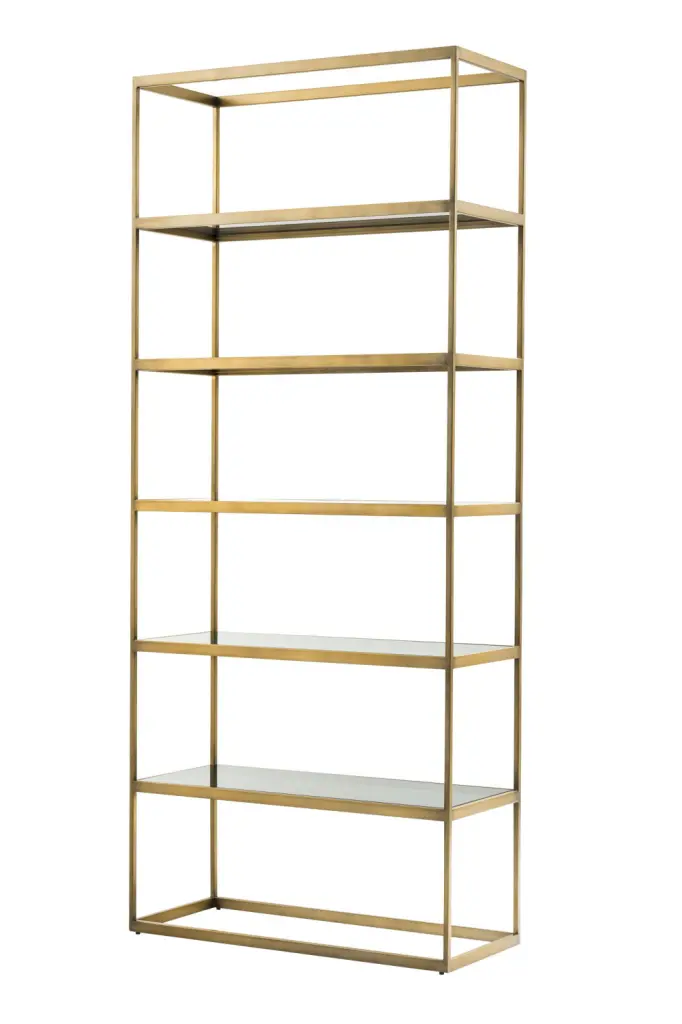 Bring industrial sophistication into your d��cor with the Omega Cabinet. Comprising a sleek yet sturdy frame with a brushed brass finish and 5 smoke glass shelves, it is the perfect furniture piece for displaying decorative objects.