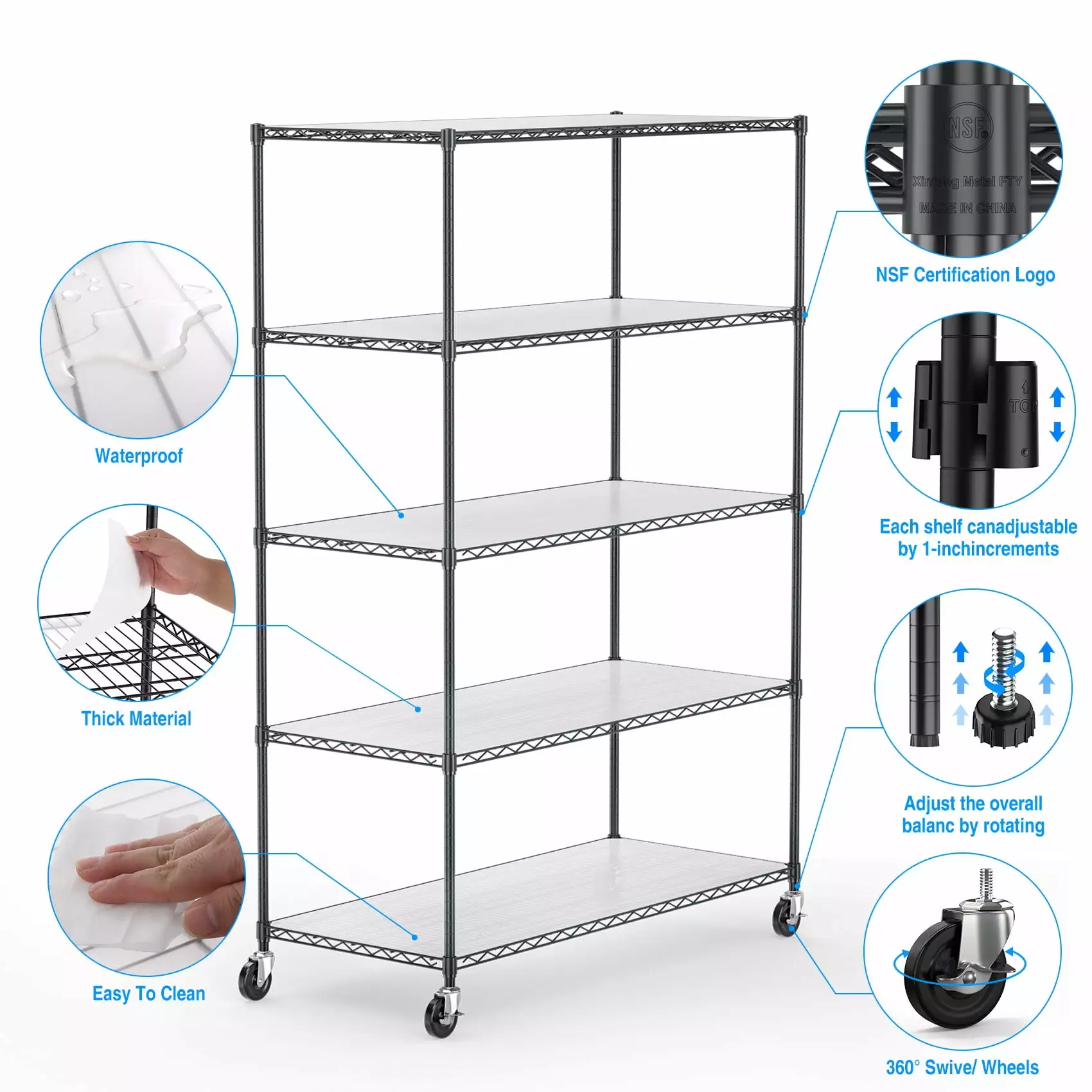 - [STURDY & EXTREMELY DURABLE] – Wire shelving made of heavy steel. it has excellent rust resistance and oxidation resistance. Our wire shelf liner is crafted to provide unparalleled quality. longevity. function and beauty. Better quality thicker than the competition. The 5 tier shelf unit passed NSF certified. safe and reliable. Storage rack are perfect addition to home. office. garage.