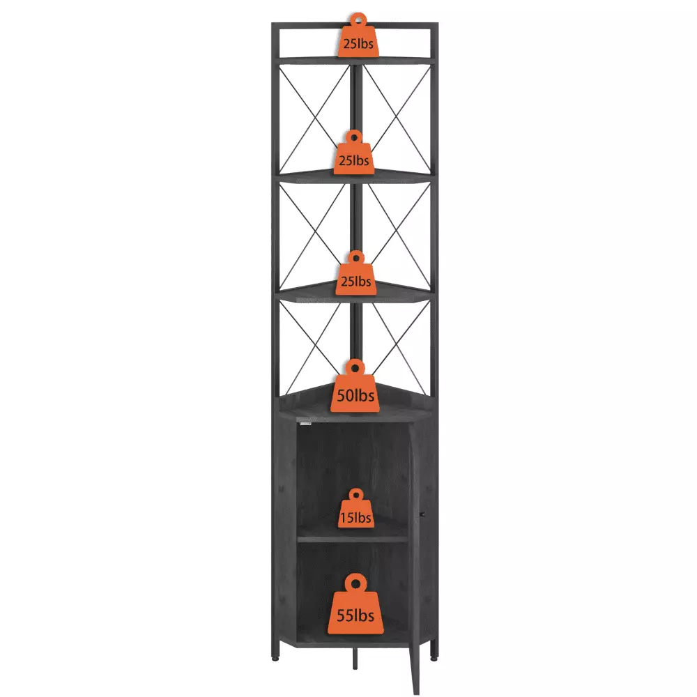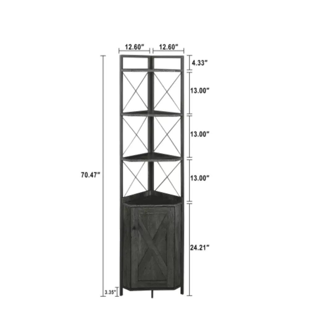 Decorate Your RoomThe black and gray corner shelf enriches your room. you can place your favorite plants. books or other decorations on it. and the gray X-shaped cabinet door adds a rustic style.