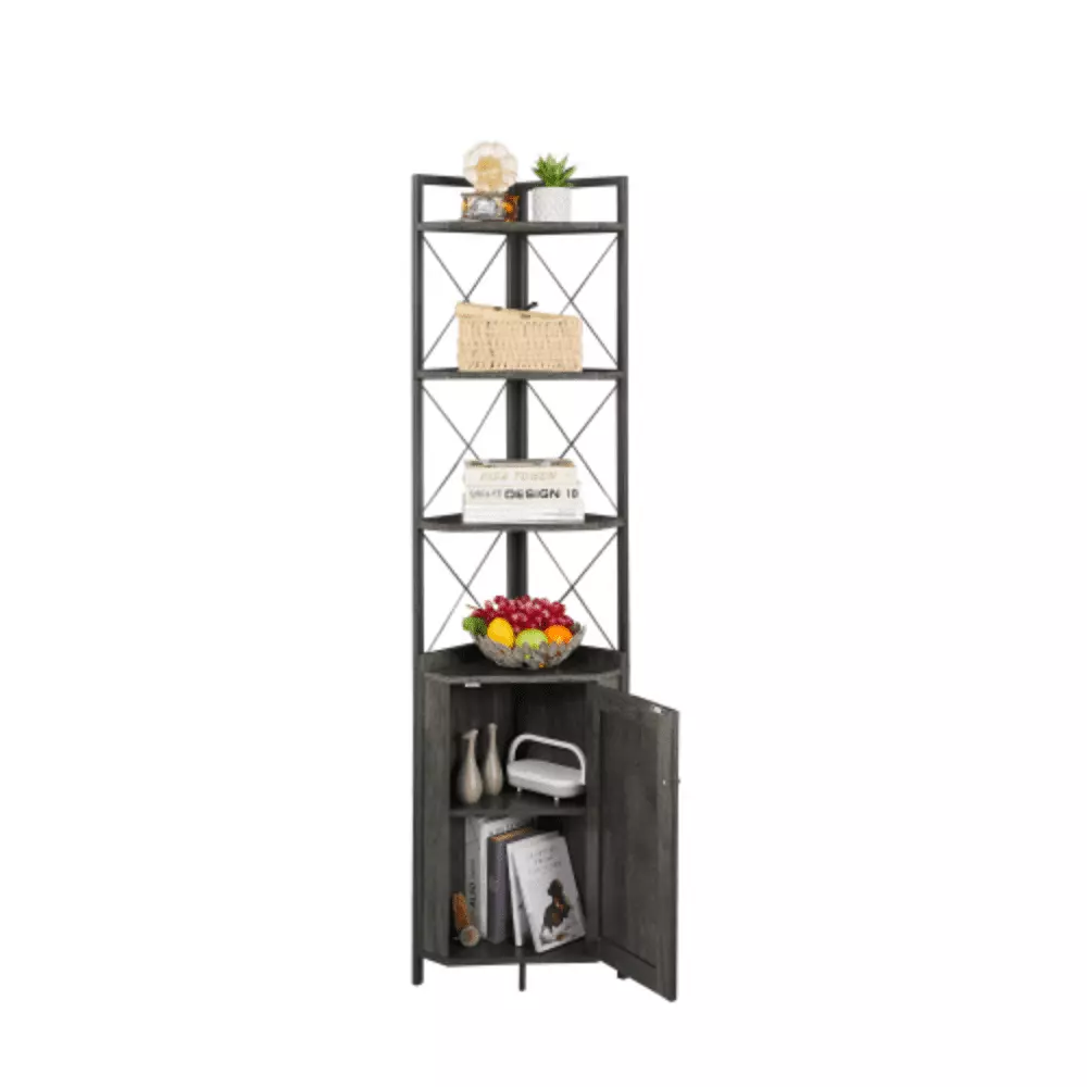 Product Name JHX Corner Shelf 5-Tier with Storage .Corner cabinet Bookshelf Stand Storage Rack(Dark Grey)