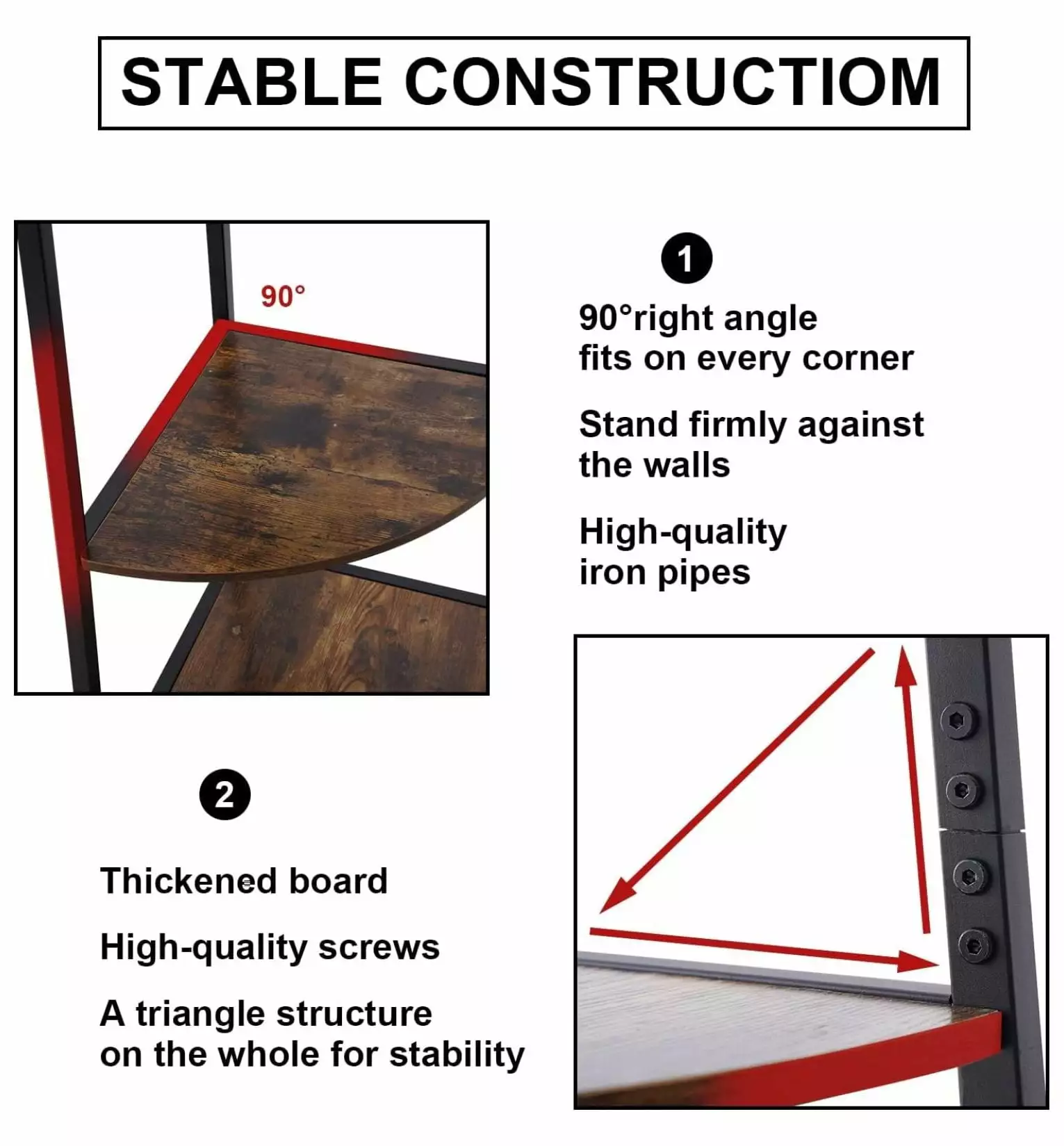 - Multi-Functional Corner FurnitureThis industrial large corner shelf with 5 shelves provide lots of space to display your books. plants. magazines. trinkets. photos and your favorite decorations. Stylish vintage industrial design compliment well with any decor . as bed room. bathroom. kitchen. closet. living room. office. etc