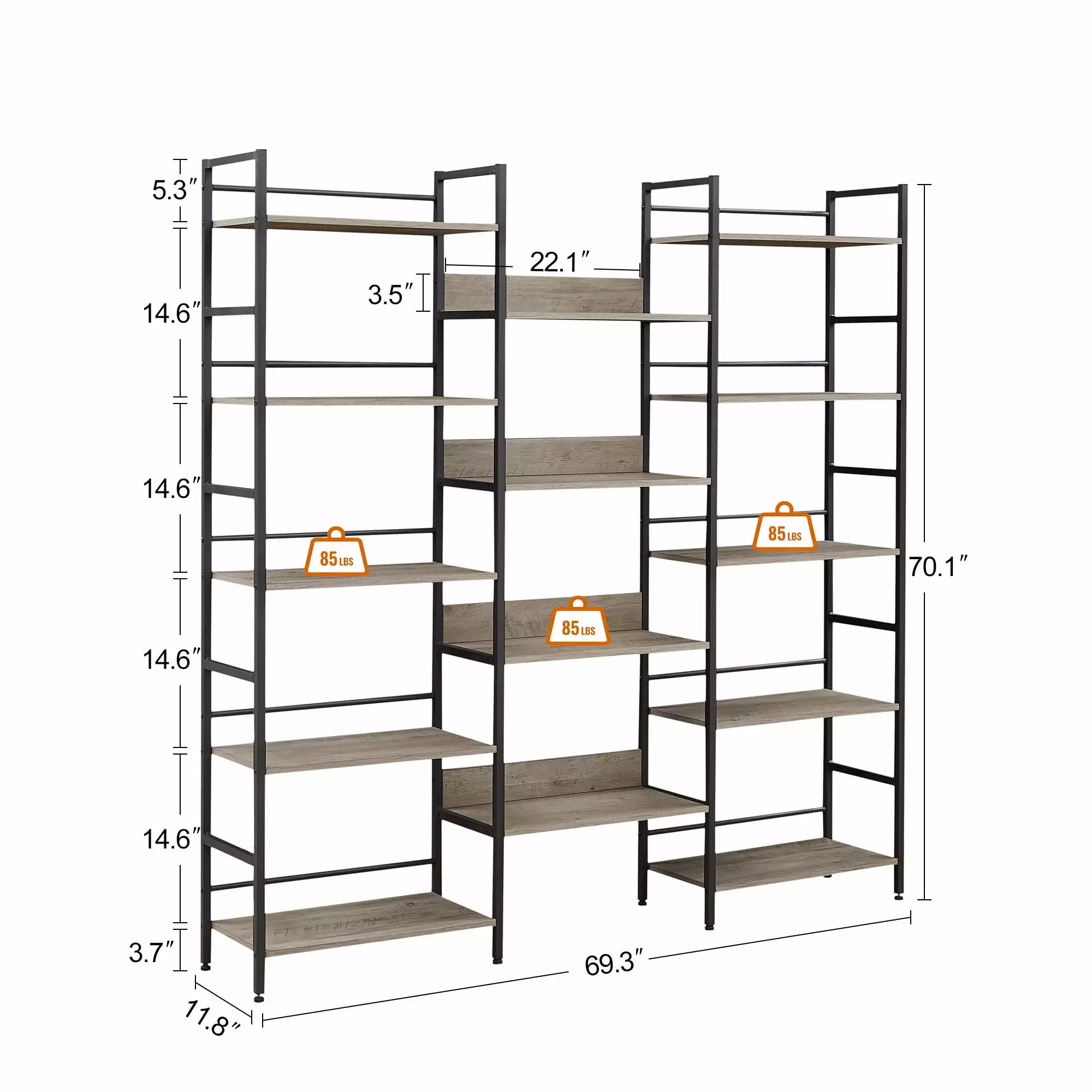 Large Storage Space:This bookshelf features 14 open display shelves. maximizing the use of storage space. with a back rail design to prevent items from falling. The spacious storage area can accommodate a large number of books. decorations. and other items. ensuring a tidy and organized home or office environment. Its large capacity design is not only suitable for home use but also perfect for offices or study rooms. providing users with a neat and functional storage solution. The overall dimensions of the bookshelf are 69.3 in length. 11.8 in width. and 70.1 in height.