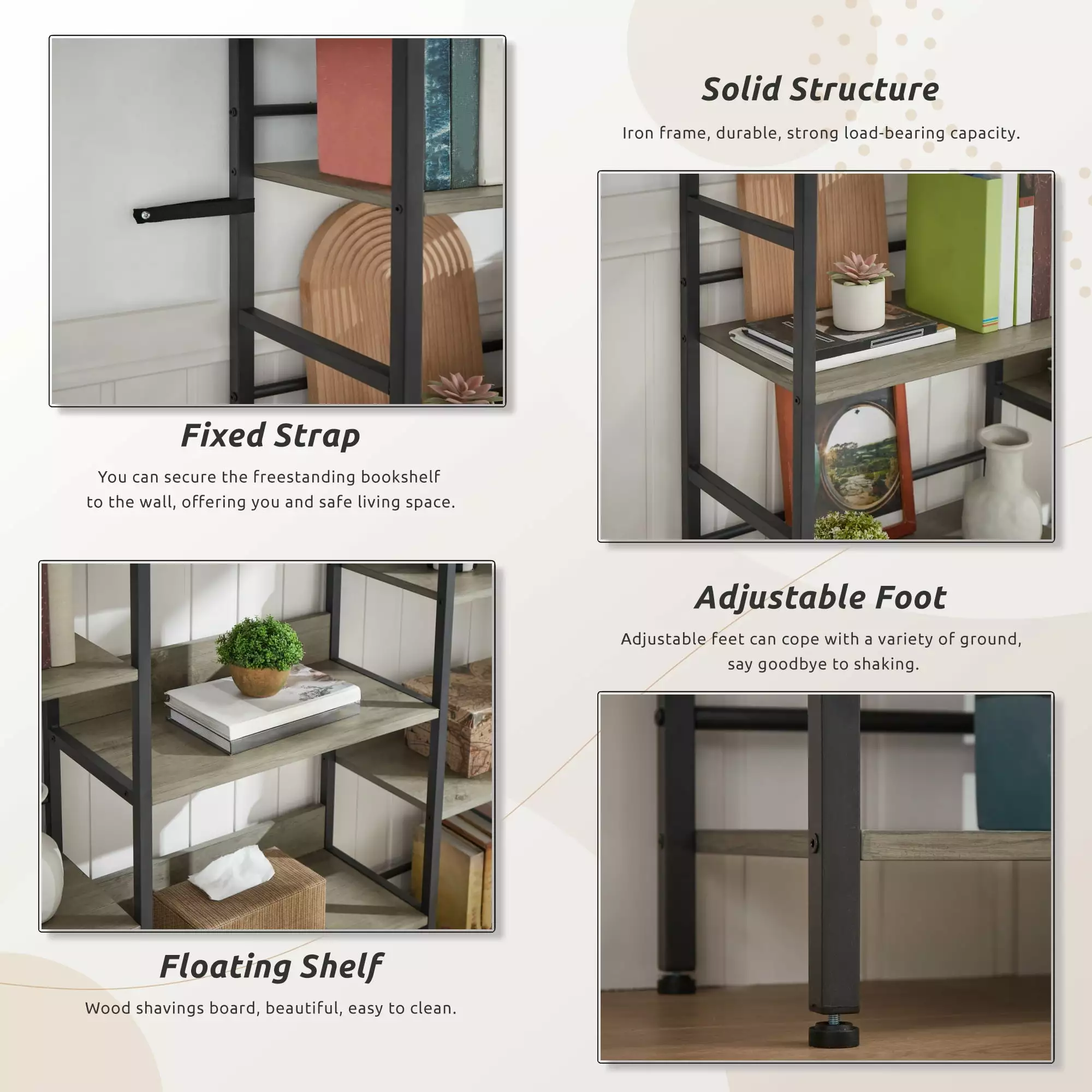 Solid Structure:This bookshelf is made with a High-Quality Metal Frame and Engineered Wood. with each plank capable of holding up to 85 lbs. The engineered wood with a melamine veneer smooth surface that is easy to clean. offering both aesthetic and practical benefits. The iron frame not only provides excellent load-bearing capacity but also enhances overall stability and durability. making it suitable for long-term use. Whether you place books. decorations. flowers. or other heavy items. it remains stable and secure. without deforming or damaging. offering a reliable storage and display space.