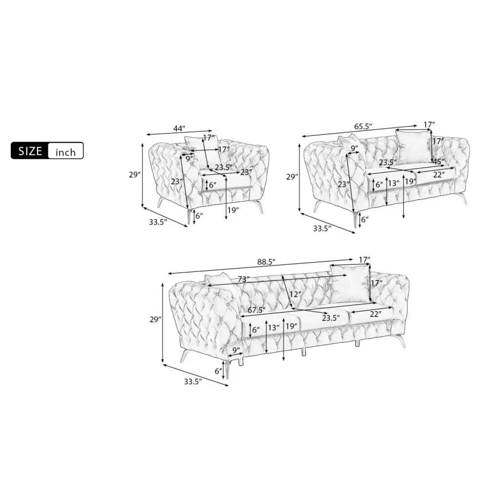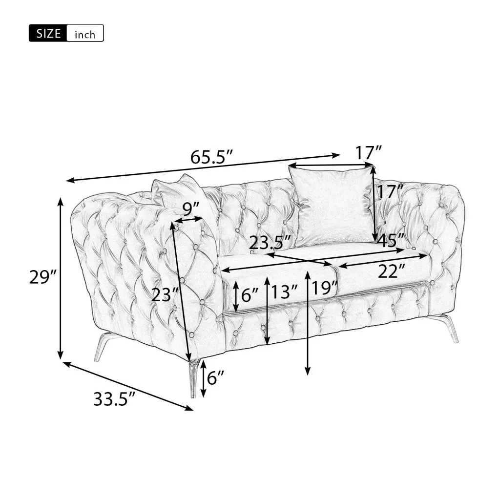 Product Details 65.5"D x 33.5"W x 29"H 110.89 (lb) Please see details Please see details 330 lbs / per seat Black PU Plywood Foam No No Yes No Sofa+ 2 Pillows Dust regularly. Clean gently with a clean. slightly damp cloth. Professional cleaning is recommended. Avoid direct sunlight. Never apply or clean with harsh chemicals. About 40 Minutes Notes Manual measurement has been used. there may be some reasonable error. All the pictures are taken by actual samples. slight chromatic aberration may occur due to lighting or display. Specification1: 1. Overall Dimension:65.5"D x 33.5"W x 29"H 2. Product Weight:110.89 (lb) 3. Package Dimension:Please see details 4. Package Weight:Please see details 5. Weight Capacity:330 lbs / per seat 6. Upholstery Material:PU 7. Frame Material:Plywood 8. Seat Construction:Foam 9. Removable Backrest:No 10. Removable Backrest Cover:No 11. Removable Cushion:Yes 12. Removable Cushion Cover:No 13. Set Includes:Sofa+ 2 PillowsProduct Type:Loveseat;Sofa Design:Standard;Pattern:Solid Color;Cleaning Code:Wet Clean ;Arm Type:Round Arm;Seat Style:Single cushion seat;Back Type:Cushion back;Cushion Construction:Foam;Weight Capacity:660;