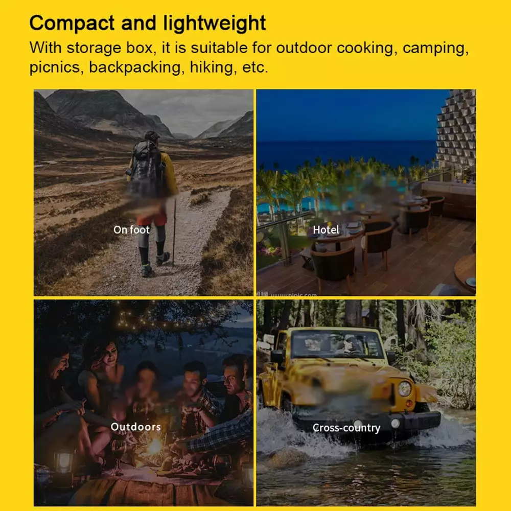 - Compact and lightweight. with storage box. it is suitable for outdoor cooking. camping. picnics. backpacking. hiking. etc.
