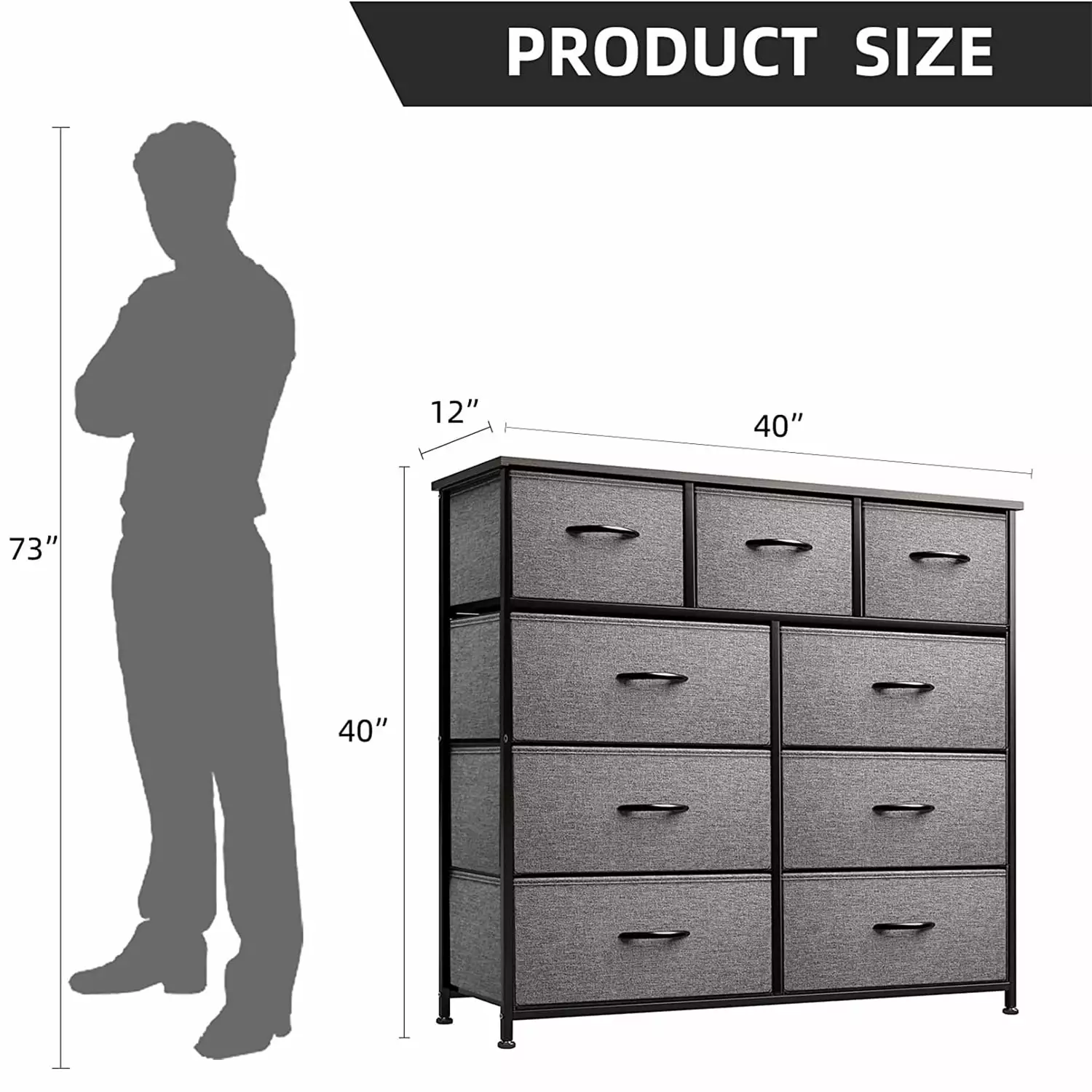 ??Dresser Feature??The dresser is made of qualitity wood??sturdy metal frame and durable Fabric.Overall dimensions: 40”H x 40”L x 12”W ??Easy Assemble??Provide necessary hardware and instructions. You can easily assemble the storage drawer unit. ??High capacity??The nine layer large drawer unit meets your storage needs.The dresser for bedroom is ideal for organizing your clothes and daily necessities; Wood top can place things you want to display or keep in reach. ??Sturdy And Durable??The sturdy steel frame provides stable support to ensure years of use. Four adjustable feet protect the floor from scratches. ??Multi Function??The drawer is very suitable for storing clothes. blankets. bed sheets. baby clothes. underwear. wallets. accessories. small tools. toiletries. cosmetics. instruments. toys. knitwear and household sundries.The chest of drawers is suitable for the Closet. Living Room. Hallway. Nursery. even bedroom and other places where things need to be stored. |