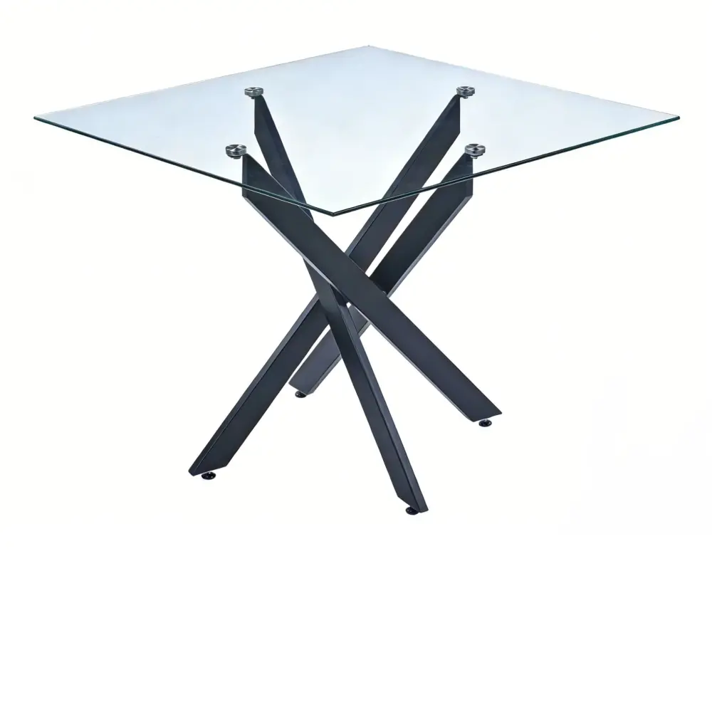 Dining Table With Cross Metal Leg And Tempered Glass, Modern ✔ Assembly Service Available – Extra Fee ✔ Tested for 500 lbs – Weight Capacity 🛒 Design Your Dream Living Room