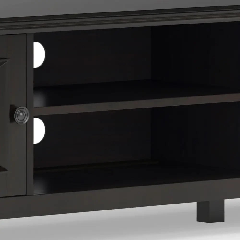 - Extra roomy TV Stand is perfect for TVs up to 80 inches, features cord management cut-outs for painless installation of TV and media components