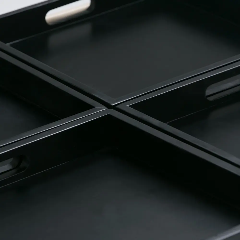 - Features substantial interior storage space with four flip over serving trays