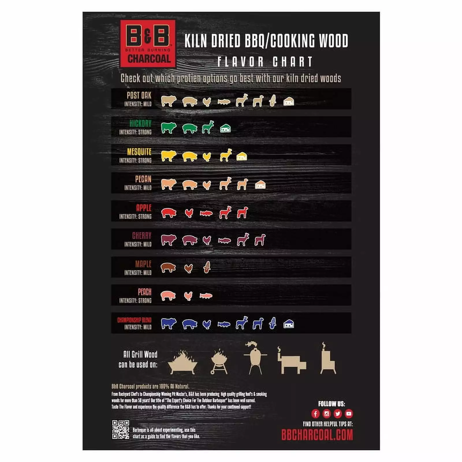 • Brand Name: B&B Charcoal Flavor: Pecan Product Type: Wood Smoking Chunks Container Size: 549 cu. in. Packaging Type: Bagged