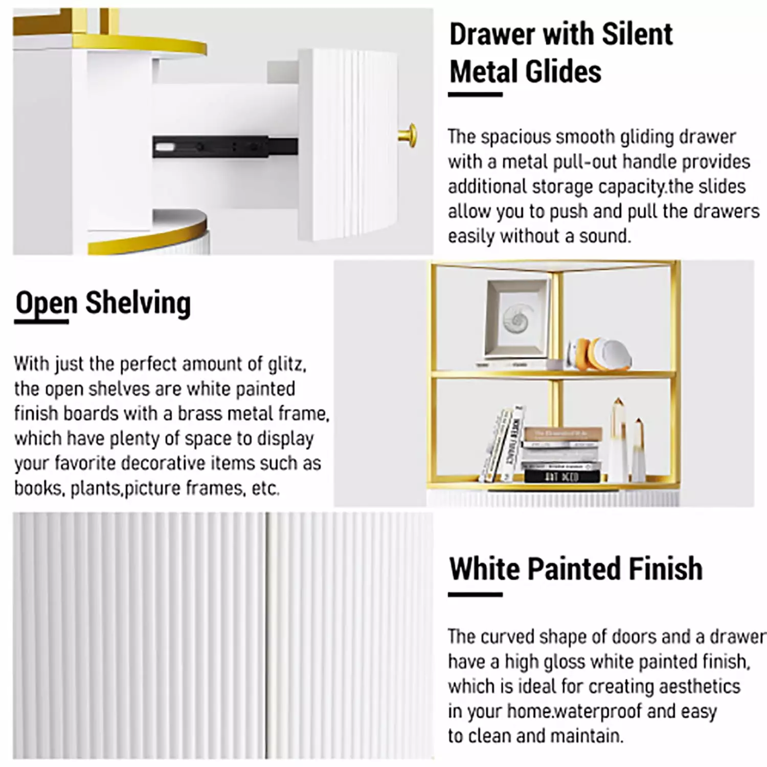 The curved shape of doors and a drawer have a high gloss white painted finish.which is ideal for creating aesthetics in your home.waterproof and easy to clean and maintain.