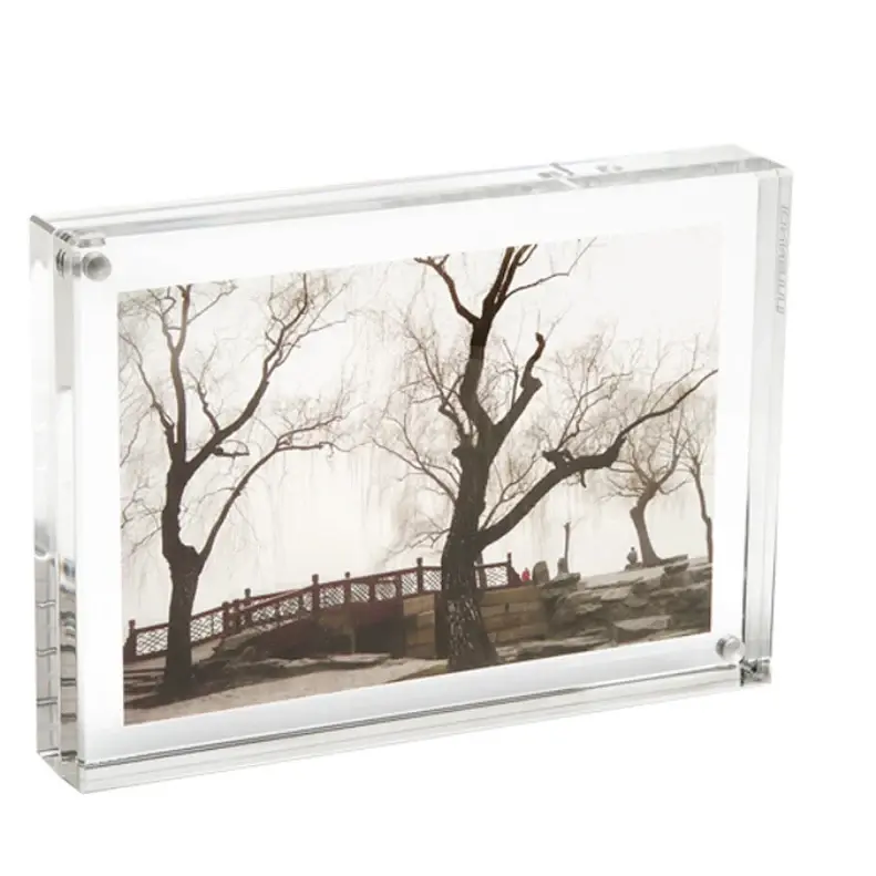 The Original Magnet Frame ® was designed by Nicolai Canetti over 25 years ago. Produced of two thick panels of crystal clear, solid acrylic held together by tiny magnet points, the picture is easily placed between the two panels and held confidently without any hardware. Display 2 photos back to back, horizontally or vertically.
