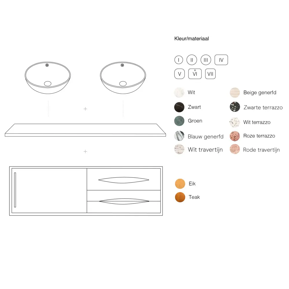 This antique bathroom cabinet is the eye-catcher in your bathroom. We combine a vintage vibe with a retro look and feel. Here we combine our Bill cabinet with chalk marble sinks and a white marble top.