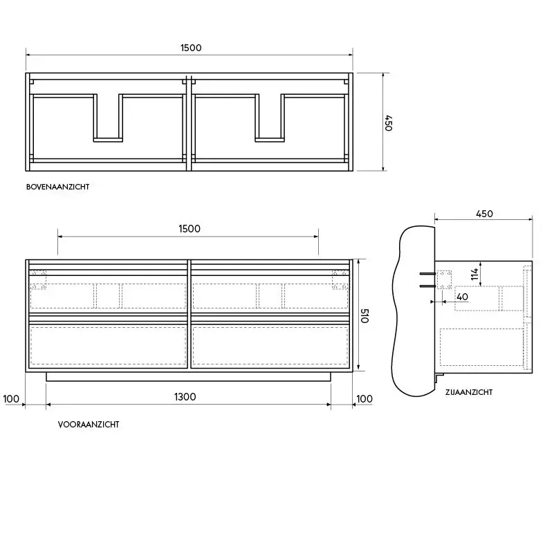 The oak bathroom cabinet gives the bathroom furniture a beautiful Scandinavian and classy look. Thanks to its large drawers, it also includes practical storage space for all your toiletries or towels. This floating bathroom furniture looks even more spacious.