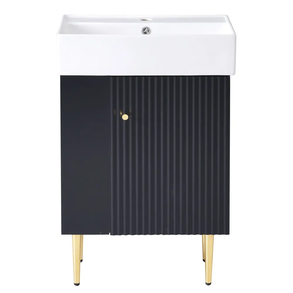 Bathroom Vanity, Combo Cabinet, Bathroom Storage Cabinet, Single Ceramic Sink, Right Side Storage – Black