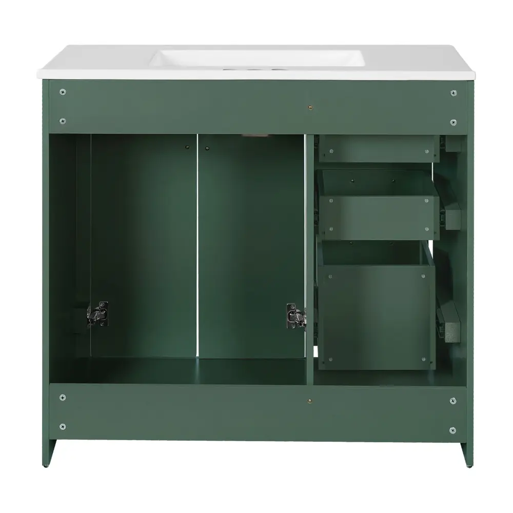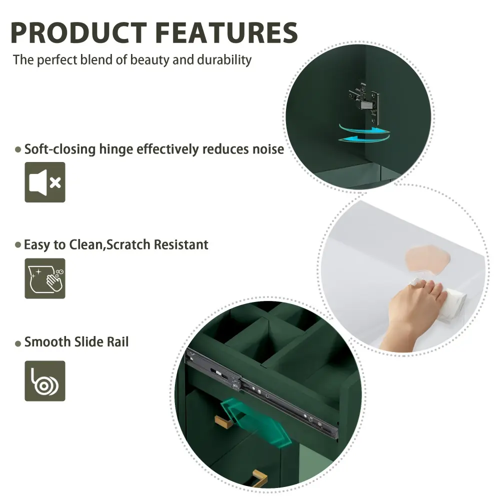 Bathroom Vanity With Sink, Storage Cabinet, Freestanding Install With 3 Drawers & Soft Closing Doors – Green