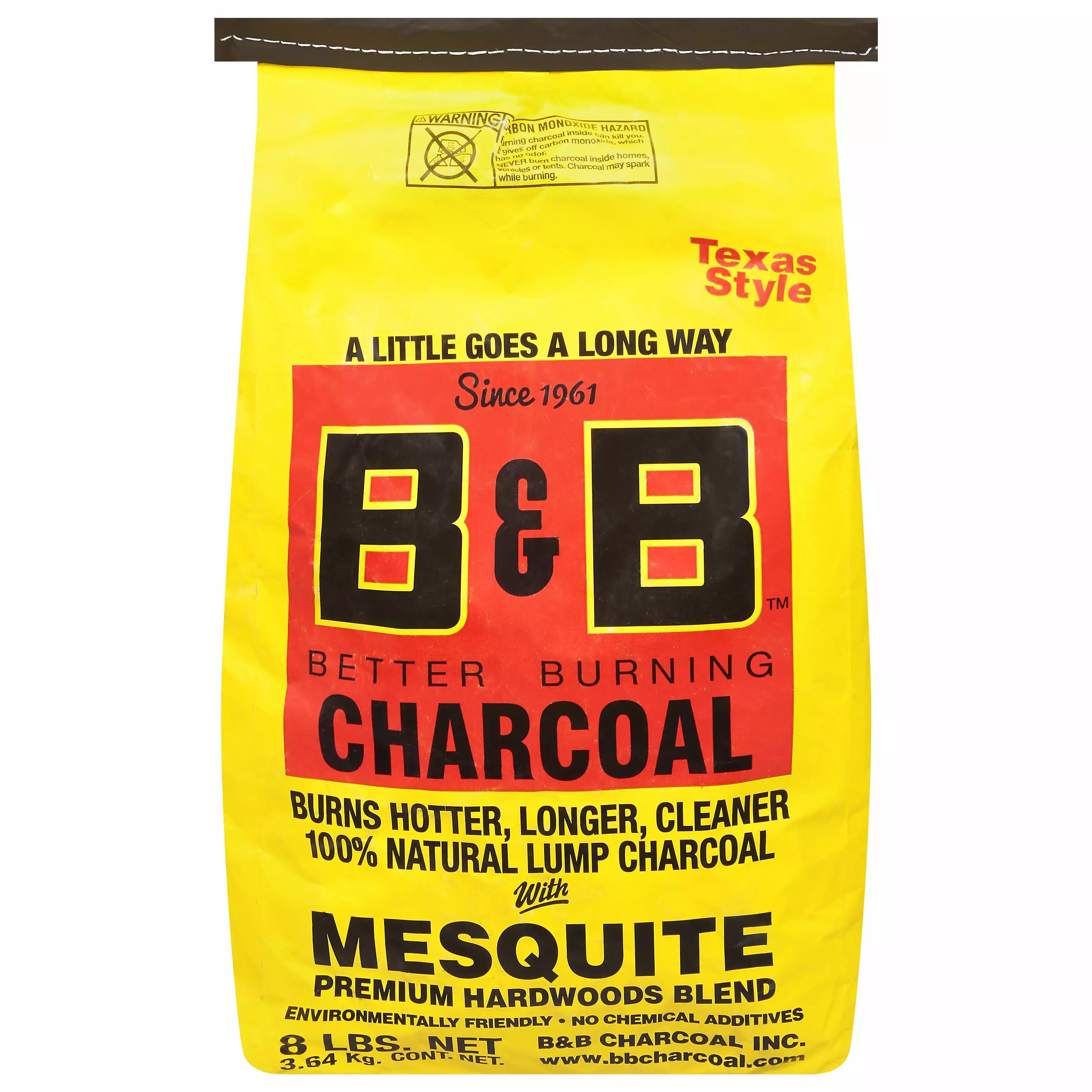 - Better burning charcoal. Burns hotter. longer. cleaner. 100% natural. Environmentally friendly. No chemical additives. www.bbcarcoal.com. A little goes a long way. Better charcoal. Better BBQ. Better burning charcoal since 1961. B&B Premium Quality Mesquite Lump Charcoal: Through our unique process. our pure mesquite lump charcoal is naturally made exclusively from mesquite. No chemical additives or fillers are added. which is so commonly found in many branded briquets sold today. Our B&B pure mesquite lump charcoal burns hotter. longer & cleaner. providing consistent natural flavor. long-lasting burn time performances for all your outdoor BBQ’ing/grilling experiences with the added bonus of saving you both time and money. Our No. 1 quality and natural processes has made our B&B branded charcoal products the expert’s choice for the outdoor BBQ’rs for many. many years! Product Advantages: No other charcoal burns hotter. longer. & cleaner than B&B lump charcoal. Because it burns hotter and longer. it sears meat quicker locking in the natural flavor with the added bonus of saving you both time and money. This product is 100% natural. no chemical additives or fillers. just 100% pure hardwood lump charcoal. Making any food more flavorful and palatable. B&B natural lump charcoal has been the healthier. wiser choice for the outdoor BBQ’r since 1961. Guaranteed Satisfaction: For over 50 years. B&B Charcoal. Inc. has been committed to provide you with No. 1 quality charcoal products for all your outdoor BBQ’ing/grilling experiences. B&B stands behind our products and offers you our guarantee of satisfaction. If you have any questions or comments please visit us at www.bbcharcoal.com. Thanks for your continued support! Expert’s choice. Product of Mexico.