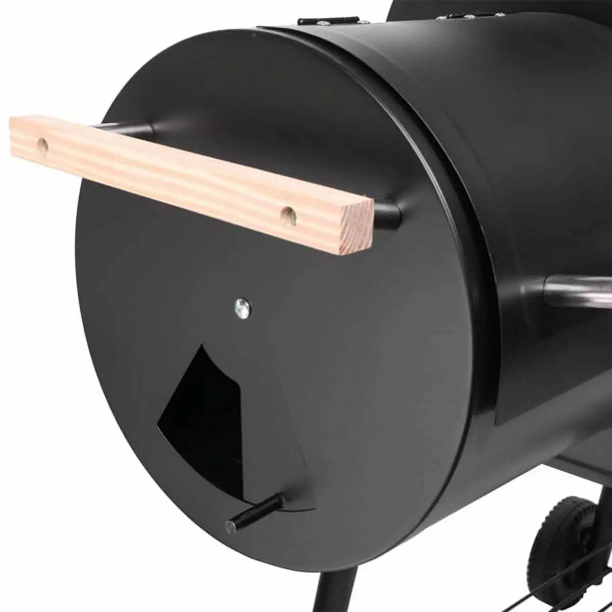 Introductions: Do you want to enjoy cooking anytime. anywhere If so . Zokop Oil Drum Charcoal Furnace High Temperature Spray Paint (500-600 Degrees) Diameter 15cm Plastic Wheel. It will be your best choice. This product uses a spherical design. multi-function oven. because of its small footprint. it can save space. so it can be easily carried anywhere and enjoy cooking. The seamless connection between side smoker and main chamber help to heat up quickly and keep warming. What do you hesitate for Hurry and place an order! Specification: 1. Color: Black 2. Material: Steel 3. Cooking Height: 75cm / 29.6 Inches 4. Main Chamber: Dia 30.5cm / 12 Inch 5. Side Smoker: Dia 30.5cm / 12 Inch 6. Main Chamber Cooking Area: (24.4 x 11.8)" / (61.98 x 29.97)cm(L x W) 7. Side Smoker Cooking Area: (11.8 X 11.8)" / (29.97 x 29.97)cm(L x W) 8. Wooden Shelf Area: (24.4 X 8.5)" / (61.98 x 21.59)cm(L x W) 9. Thickness Of Material 0.6 mm 10. Product Size: (44.1 x 25.1 x 44.7)" / (112.01 x 63.75 x 113.54)cm(L x W) Package Includes: 1 x Charcoal Grill 1 x User Manual