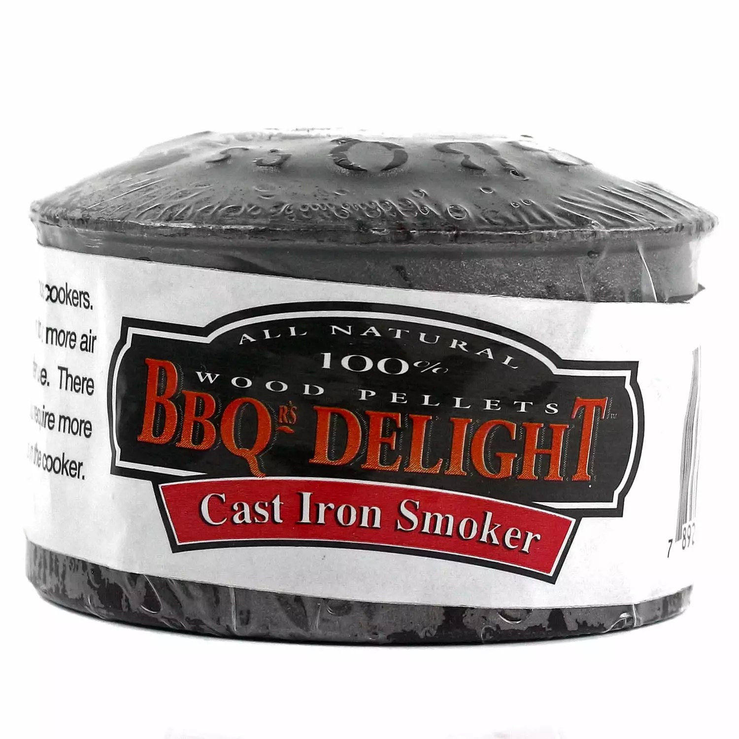 BBQr’s Delight Cast Iron Smoker for Grills & 1lb Bag Savory Herb Blend Pellets The BBQr’s Delight Cast Iron Smoker Pot is the perfect solution to turn any grill into a smoker. Simply place the smoker pot on top of your charcoal. put a few teaspoons of Savory Herb smoker pellets in. place the lid on and let the smoking begin! Just 1/3 of a cup of pellets will keep your grill smoking for up to an hour and to release more smoke. simply turn the lid upside down and place it back on the smoker. This is a great addition to the grill for anyone interested in getting that great smokey flavor without investing in a new unit. With the included 1-pound bag of BBQr’s Savory Herb Pellet Blend. you’ll have plenty of fuel to cook up a storm on the patio or deck with flavor notes of Oregano. Rosemary. and Thyme. These premium pellets are perfect for beef. chicken. pork. fish. and vegetables. These pellets are made from 100% wood with no additives for high BTU. consistently clean-burning. low-ash. and are packaged in a resealable bag to make proper storage easy. Roughly 10 uses per 1-pound bag. Features Cast iron smoker pot turns any grill into a smoker Simple. easy. and clean BBQ smoking with savory herb pellets 1-pound bag of all-natural BBQr’s Delight Savory Herbs Wood Pellets Perfect for cooking beef. chicken. pork. fish. and vegetables Roughly 10 uses per 1-pound bag Made from 100% oak wood with Oregano. Rosemary. and Thyme Stand-up resealable bag