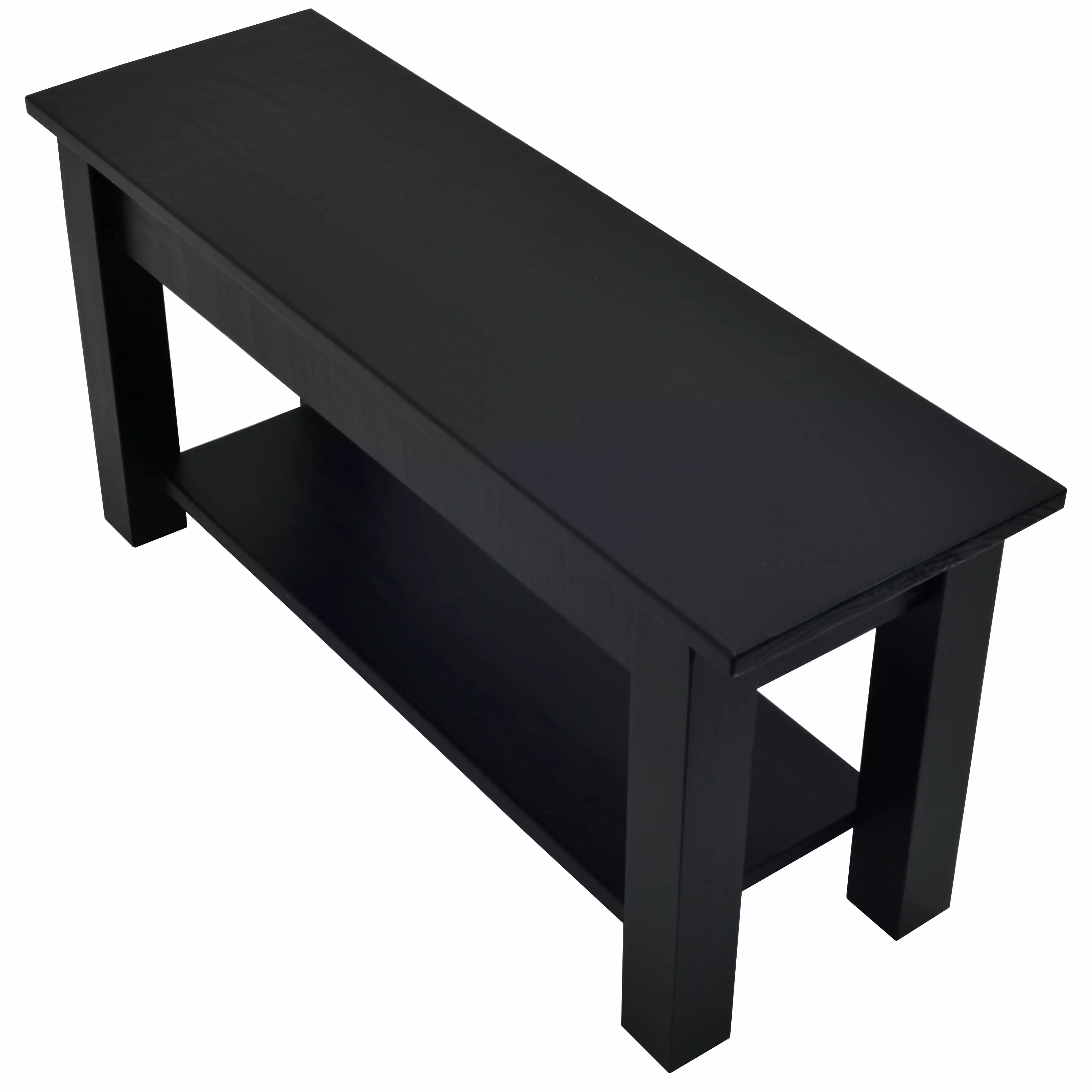 This is a Black Bench with Shelf Dimensions: 12" Deep x 17" tall (multiple lengths available just choose from the drop down). SHIPPING We want you to enjoy your new bench as soon as possible. We custom craft each of our benches. and they generally ship within 15-20 business days right to your front door. 100% SOLID WOOD. HAND CRAFTED No particle board or cheap assembly practices here. We craft and assemble each one by hand and finish each with a hand-applied multi-step durable satin polyurethane finish. After ensuring that everything fits and looks just right we pack it for shipping. Have a question about this item* Contact us at (646) 481-3295 or email: [email protected] Grain / Color NOTICE: Because our furniture is crafted from solid real wood there will be variation in color and grain pattern. Products in the images have been crafted from the same species of wood and stained with the exact same stain color as the product you will receive. However. because wood is a natural product. no two pieces are the same. Depending on an individual piece of wood and grain pattern. the stain may take more or less resulting in the color variation. While every effort has been made to supply you with the most accurate photographic representation. you should expect some variation in your product.This is a Black Bench with Shelf