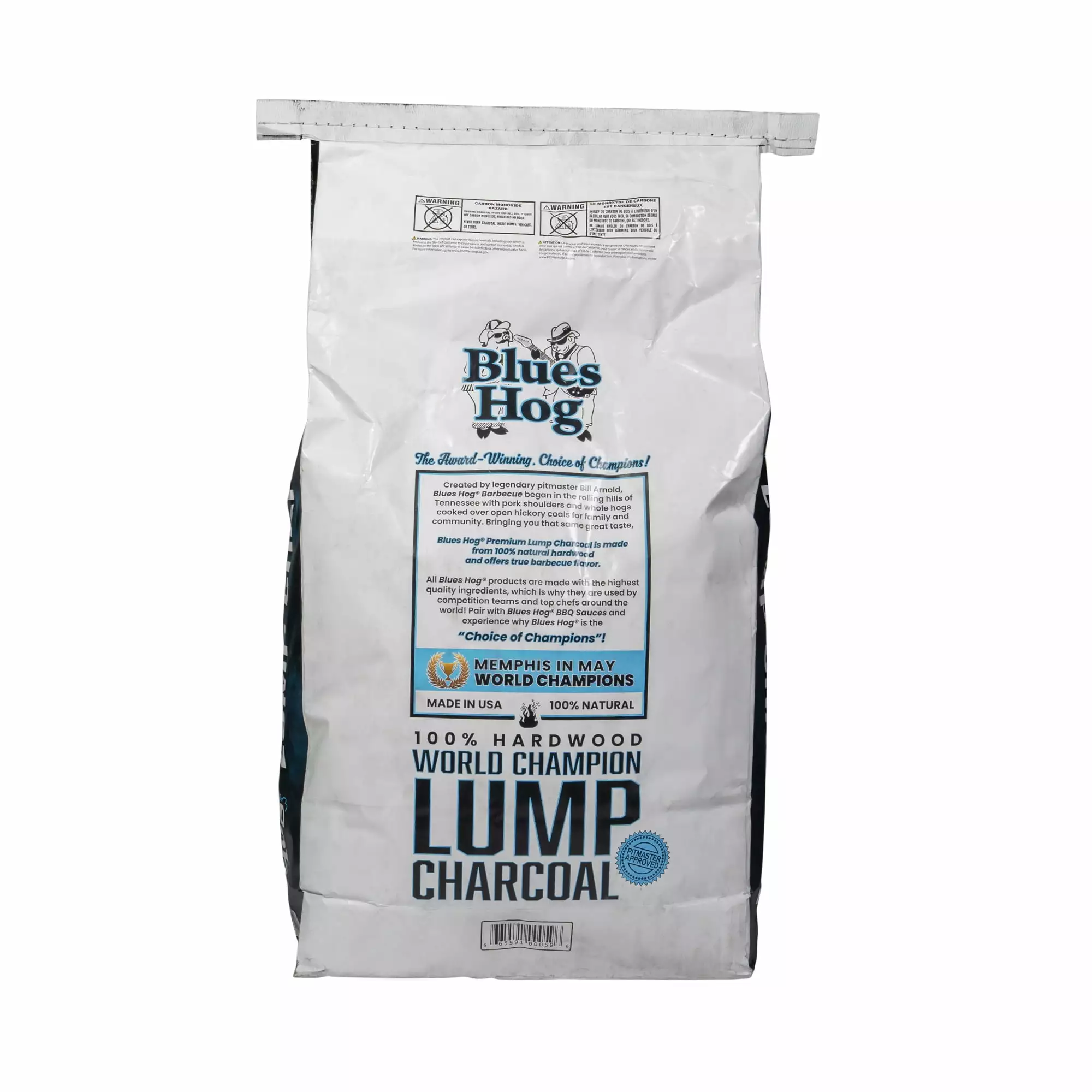 Blues Hog Lump Charcoal is single-sourced for consistency and made up of the Missouri Hardwoods: Oak. Hickory. and Maple. The large pieces burn HOT & CLEAN making Blues Hog Natural Lump Charcoal the trusted fuel source for top pit masters on the barbecue circuit! Your journey to barbecue greatness starts here with this 15.4 lb bag of Blues Hog Lump Charcoal! From the Award-Winning. Choice of Champions". Blues Hog offers 100% Natural Premium Hardwood Lump Charcoal.