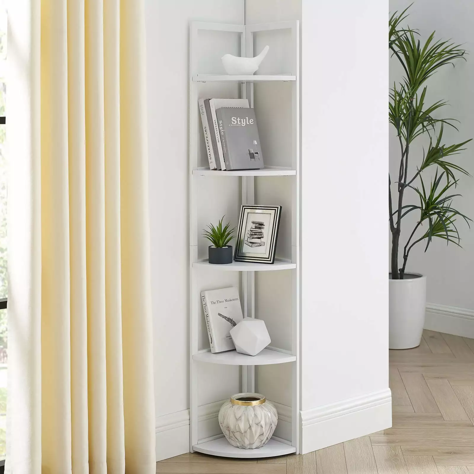 - 3. Large Storage Capacity: This 5-tier corner shelf can be used to place books. photo frames. home decorations. plants. and so on.