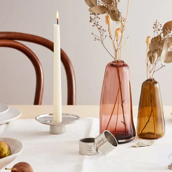 There’s nothing like the soft, warm portable of candles to make your home feel cozy and elegant. Our pewter candlestick holder with bobeche gently reflects the glow of candlelight and blocks wax from dripping on your table. The clean modern lines of these candlesticks can effortlessly update traditional settings, and harmonize beautifully in casual or formal occasions. They’re form meets function at its best.