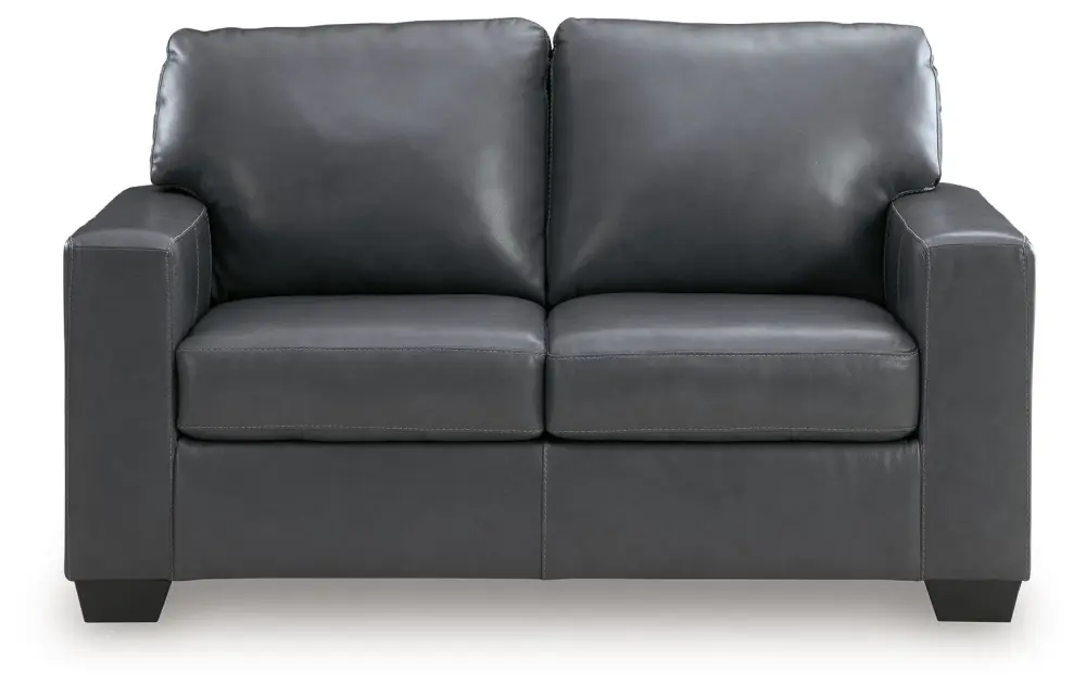 Few loveseats demand attention like this one. It’s wrapped in a combination of high-quality leather and expertly matched faux leather upholstery that’s sure to please. A two-tone effect enhances the depth of color for a uniquely rich appeal. Every inch of this striking piece is tailored to perfection, with immaculate, refined lines that take contemporary design to a new level.