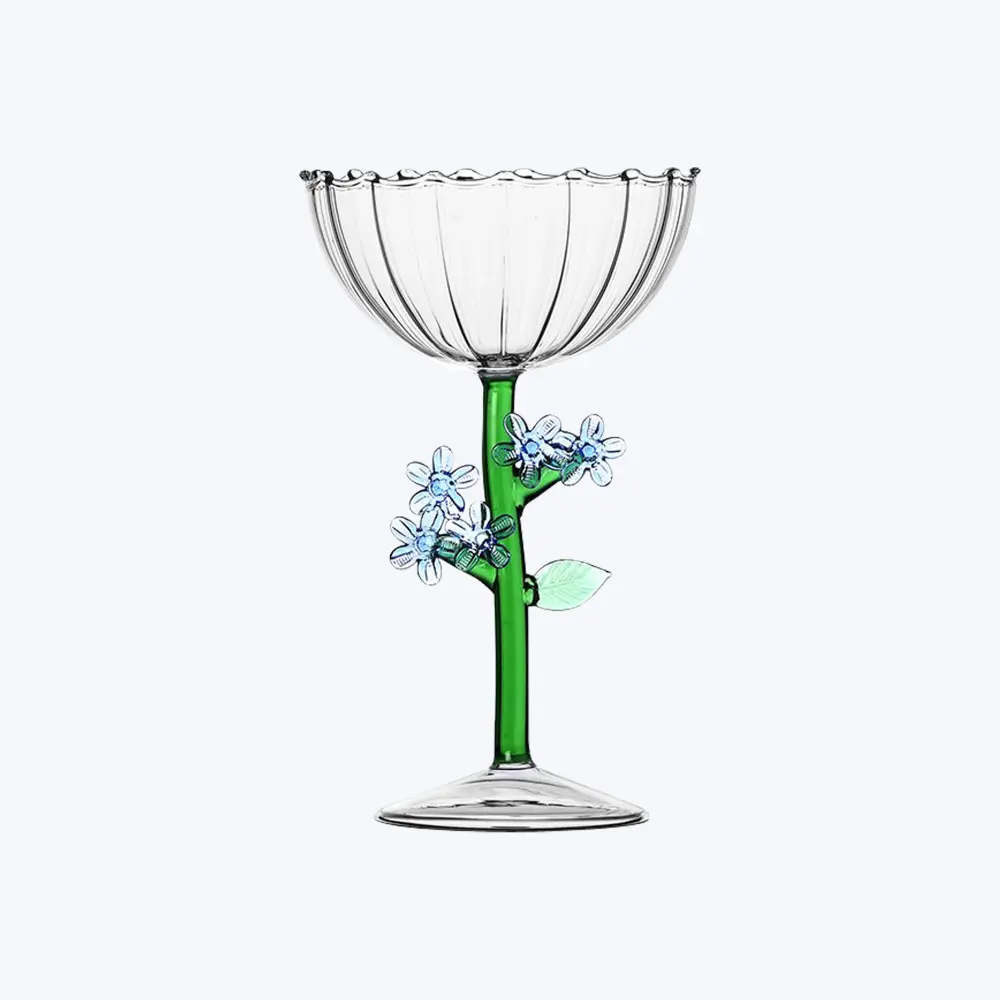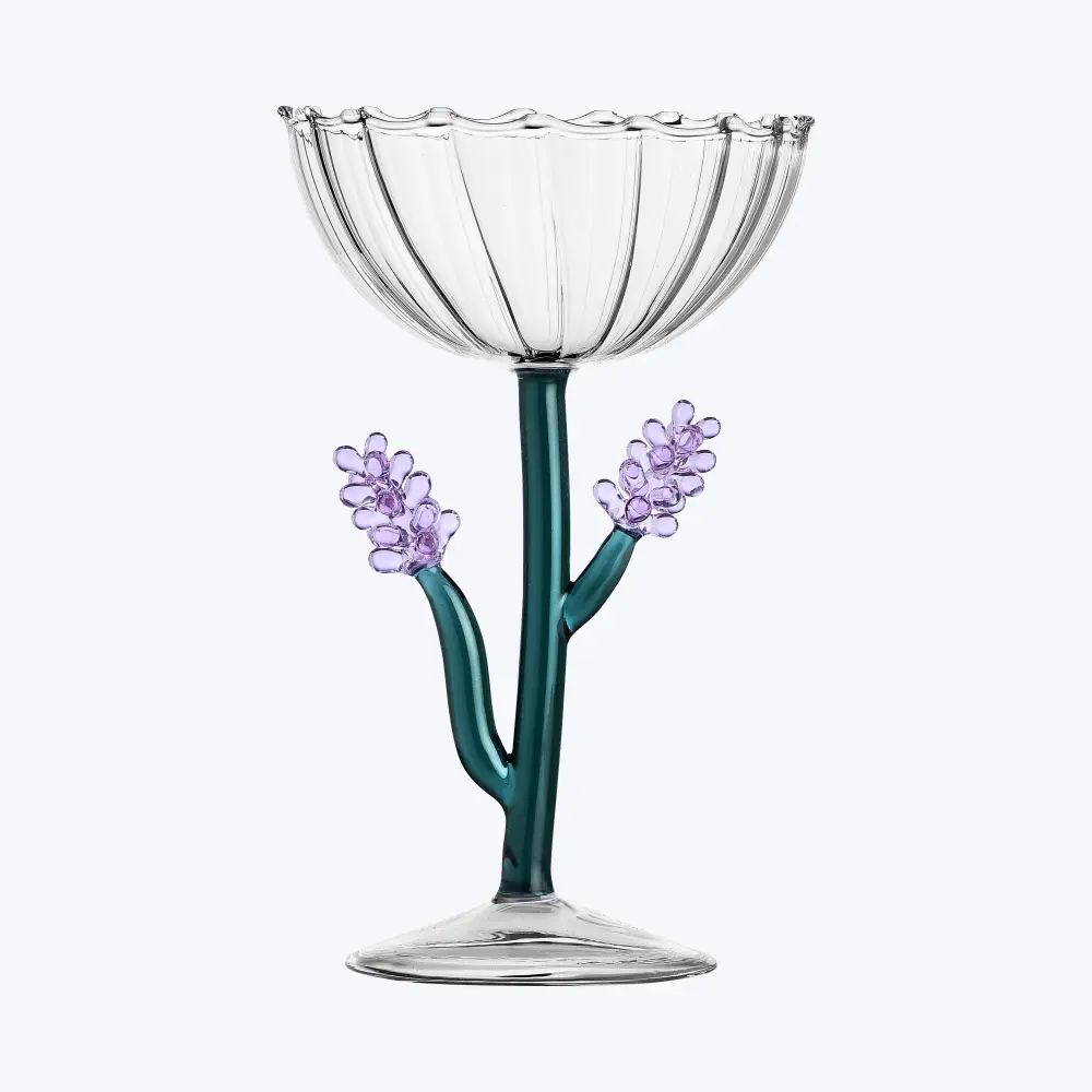 Add a botanical touch to your barware with the Ichendorf Botanica Champagne Bowl. Conceptualized by Milanese designer Alessandra Baldereschi, this extraordinary champagne bowl is guaranteed to wow at your next gathering. Handmade in borosilicate glass. Choose from Lavender, Light Blue Flower, Lilac, and White Flower.