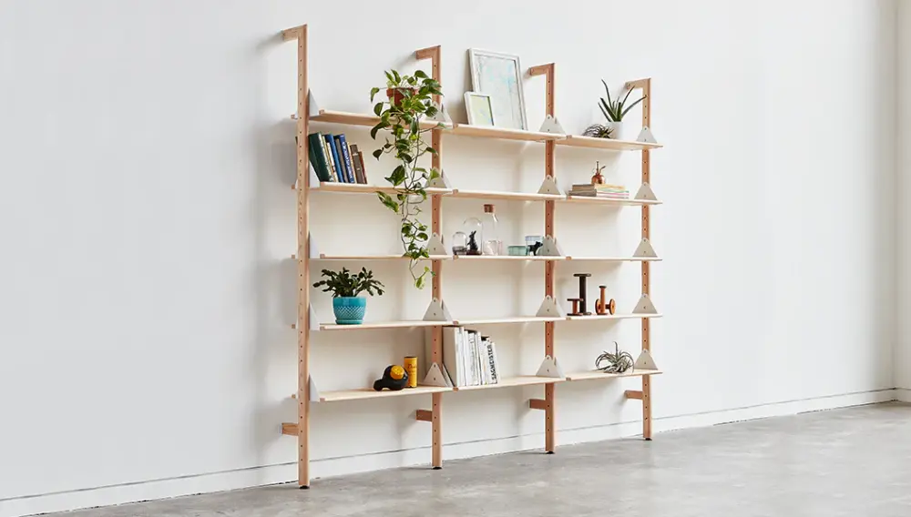The Branch Shelving System blends mid-century style with modular components that give you an infinite number of sophisticated, open-storage options for home or office. The design incorporates varying bookshelf configurations that can be transformed into a seamless workspace with the addition of a desk unit. Additional add-on units let you customize the size and layout of your shelving system to perfectly suit your space, and the shelves are height adjustable to suit any arrangement of decorative items or resources. Refined details, such as rounded edges on the shelves and uprights, soften Branch aesthetic and enhance its architectural style. Straightforward installation means you can spend more time perfecting your vision and display.