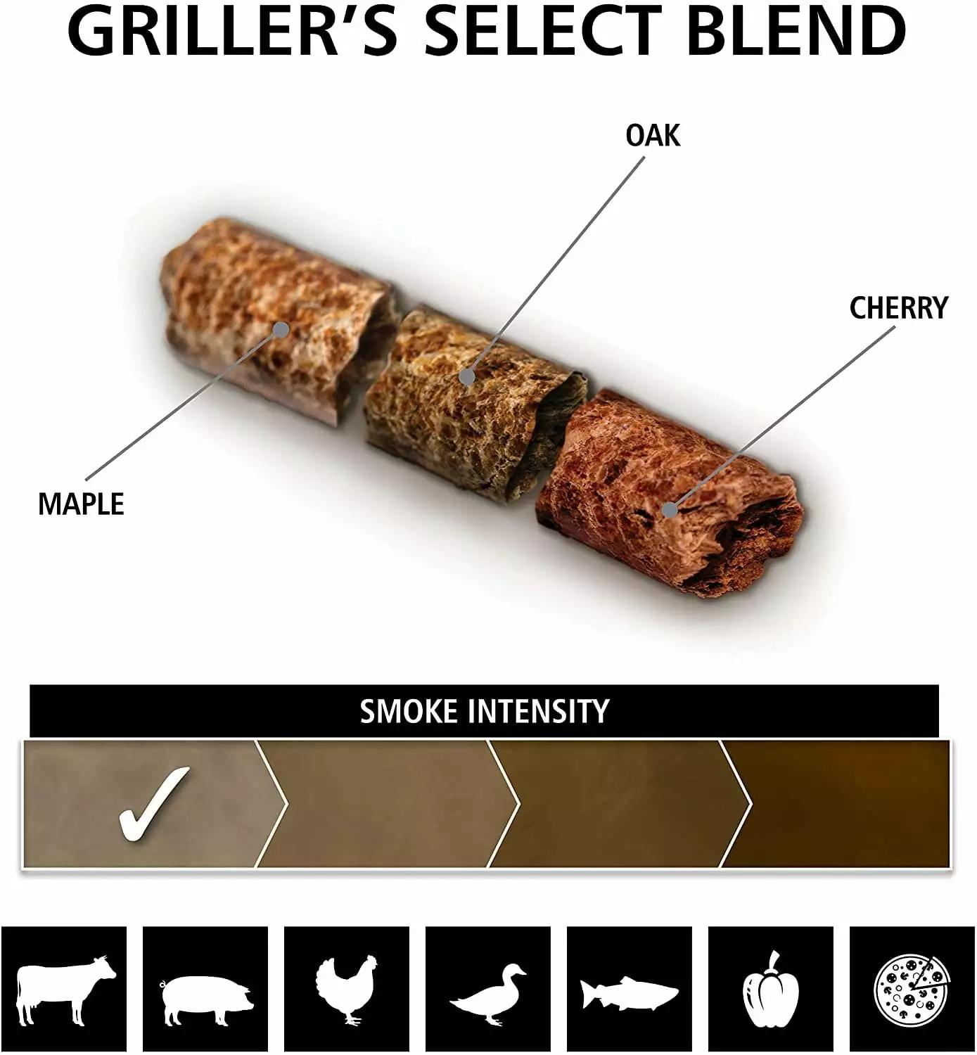 - Finely crafted blend of maple. oak and cherry woods that creates a light. sweet smoke perfect for everyday cooking