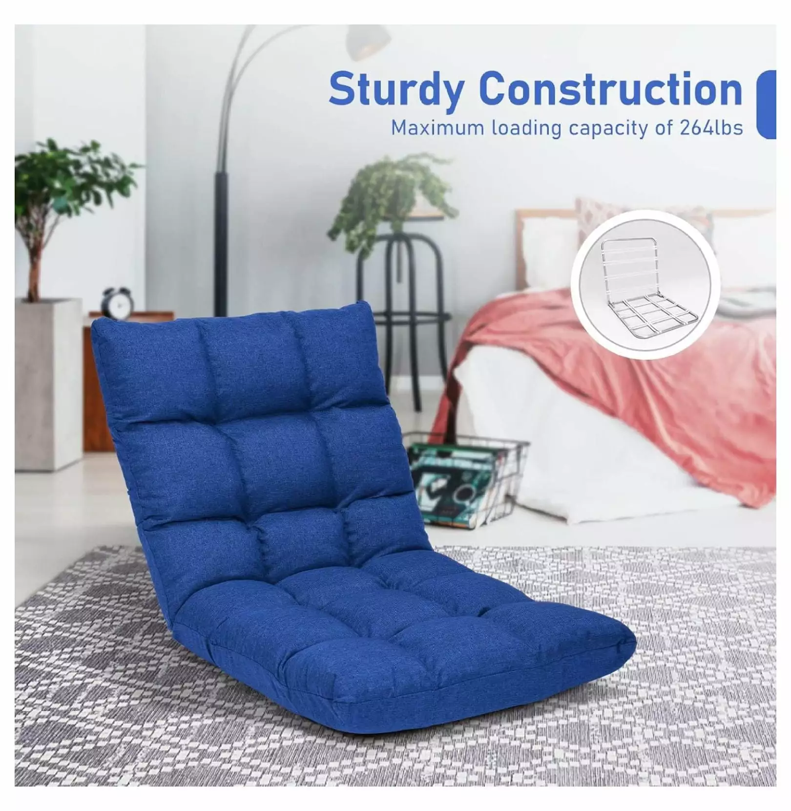 /BULYAXIA Floor Chair. Folding Gaming Chair with Back Support. 14 Adjustable Positions. Alloy Steel Frame. Lazy Sofa Lounge for Playing Reading Meditating Room Recliner for Adults. Kids (Blue)