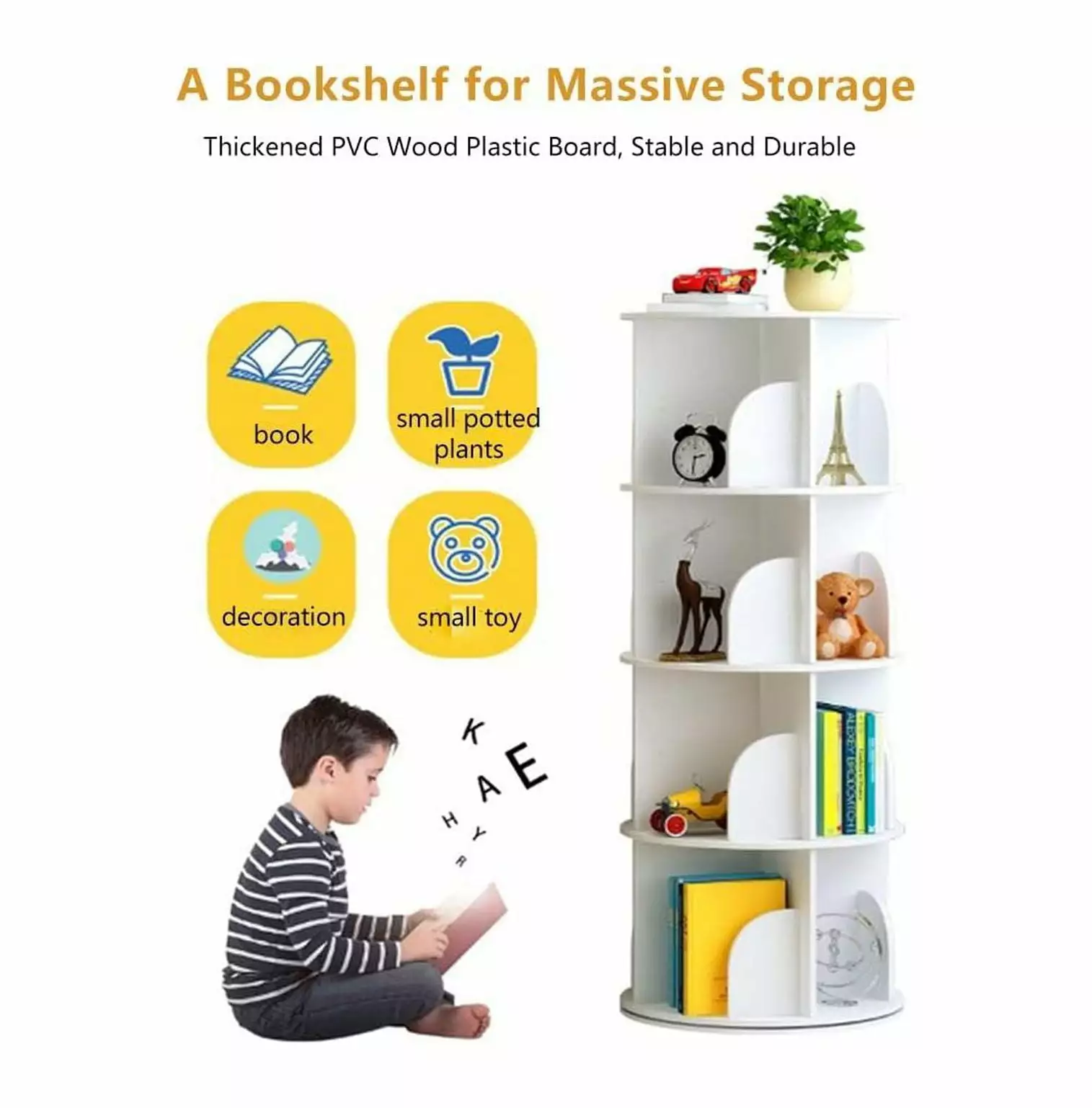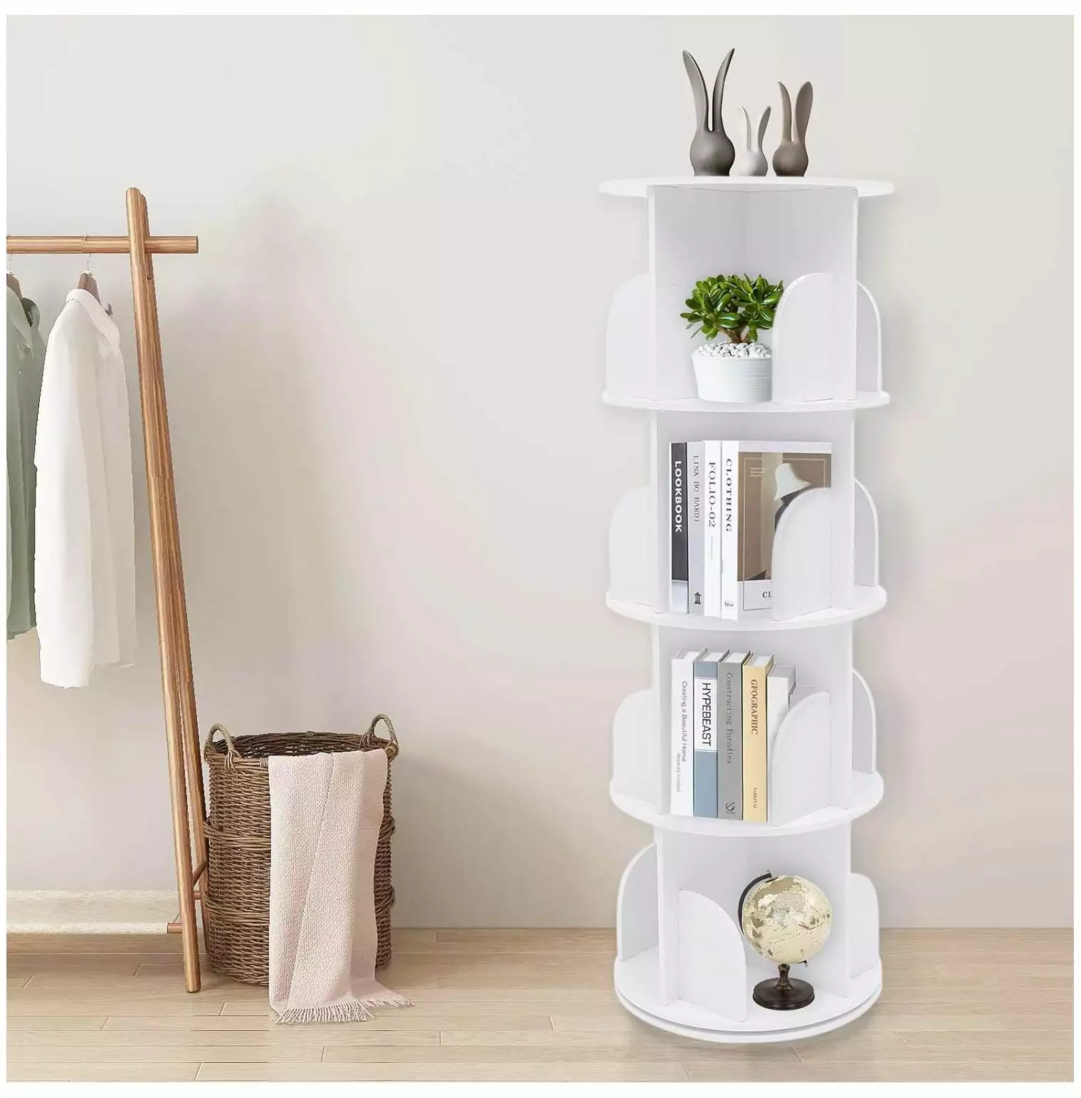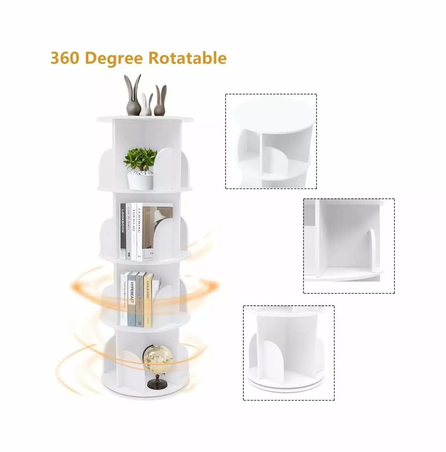 - ROTATING BOOKSHELF: This 360 rotating bookshelf. rotates safely. silently and smoothly.