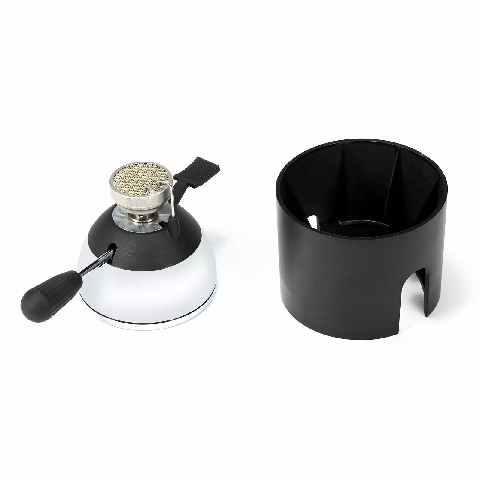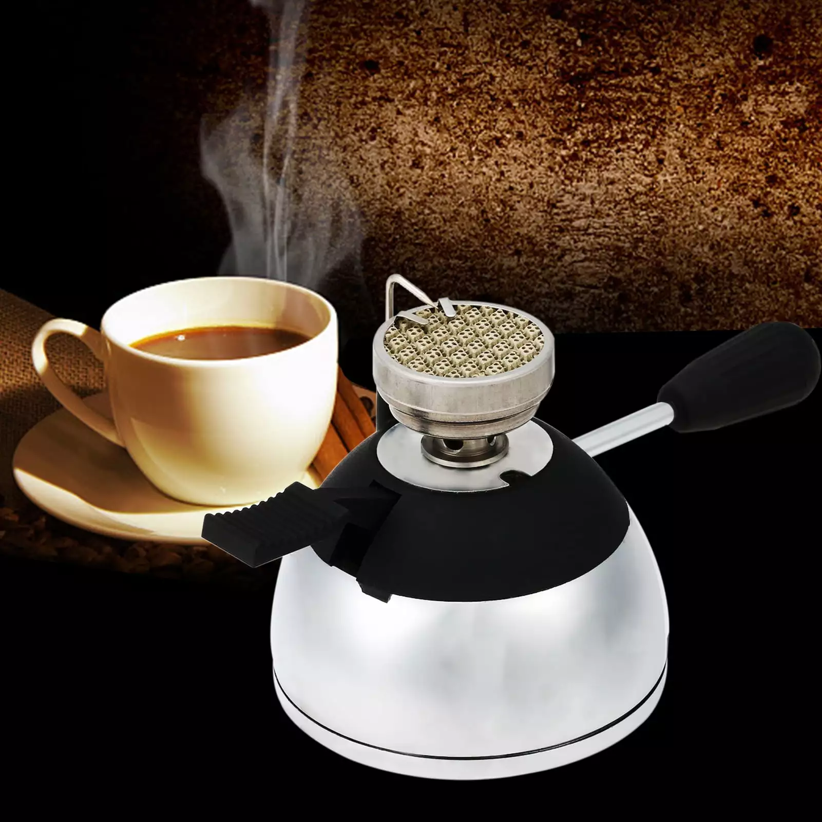 Mini Camping Stove Butane Gas Burner with Refill Rack for Tabletop Siphons Windproof Portable Cooking Stove Coffee Maker Made from iron and zinc alloy. stiff and durable. Adjustable valve controls intensity and saves fuels. Piezo ignition system. light with just push of a button. easy to use. Comes with a rack to help you refill gas. Butane gas refillable. Compact and portable. convenient for camping. backpacking. survival. etc. Can be used for cooking. boiling water. making coffee. keeping warm.