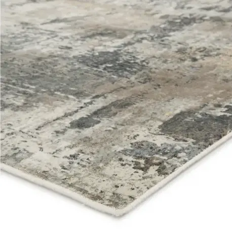 Luxurious with a glam sheen, the Caicos collection features an assortment of arresting patterns and a mixture of moody and serene hues. The Sisario rug showcases an industrial abstract design in neutral metallic-inspired tones. In gray, ivory, umber, and gold, this lustrous viscose and shrink synthetic fiber rug lends depth and dimension to transitional spaces with high-low pile.
