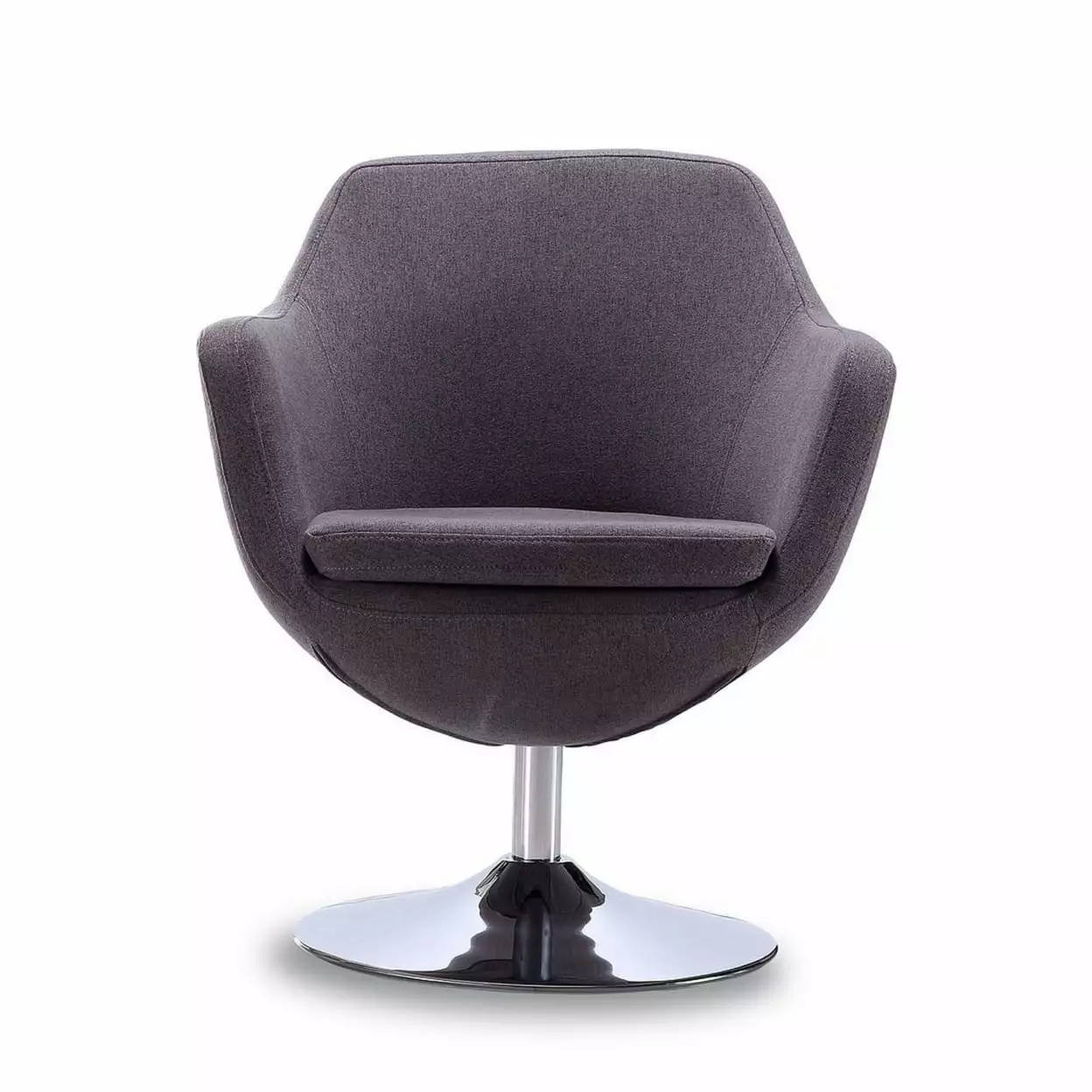 Caisson Grey and Polished Chrome Twill Swivel Accent Chair Ease into the smooth embrace of the Caisson swivel office chair. Hand-upholstered. and perched elegantly on a polished chrome base. the Caisson offers continuous comfort. The Caisson comes complete with a removable cushion. making it easy to maintain. This chair will surely become a favorite among those who appreciate comfort in style.